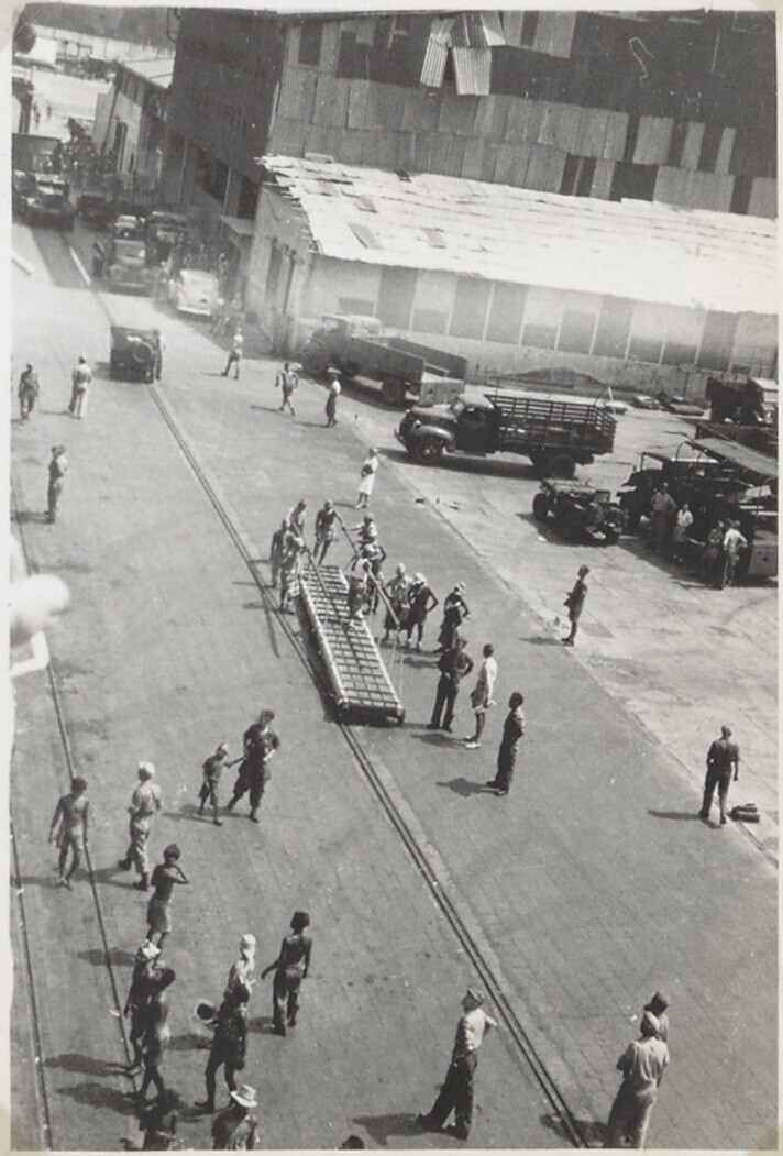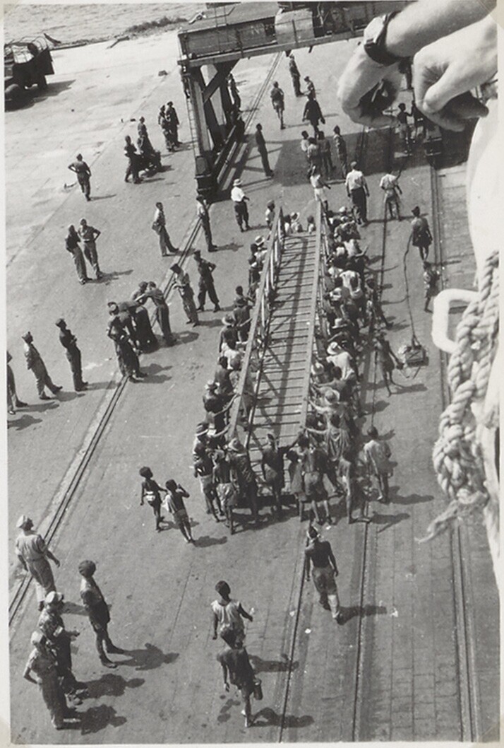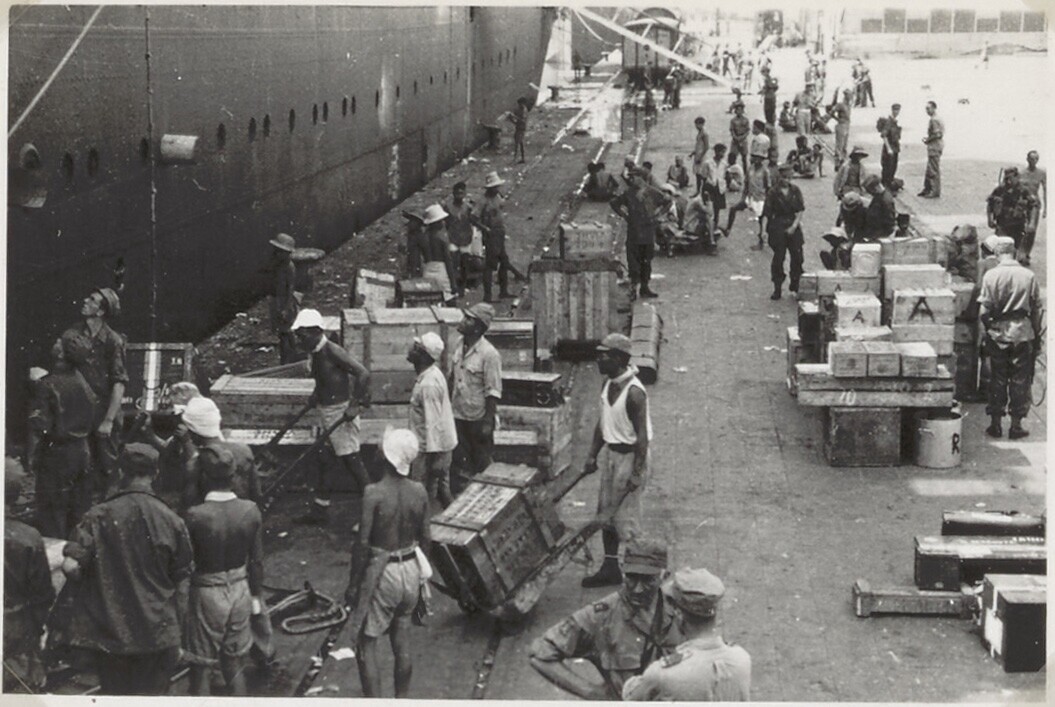 Het lossen van het troepenschip ms. Klipfontein, doo...