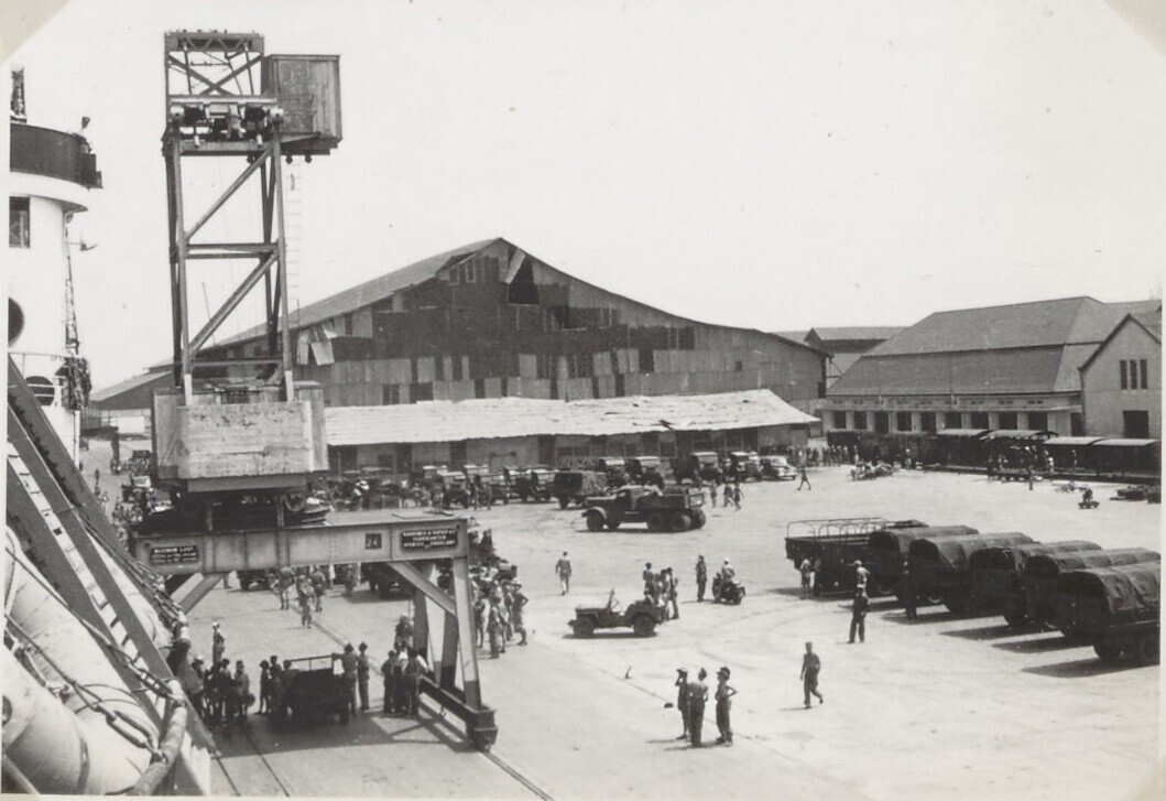 Drukte in de haven van Tandjong Priok na de aankomst...
