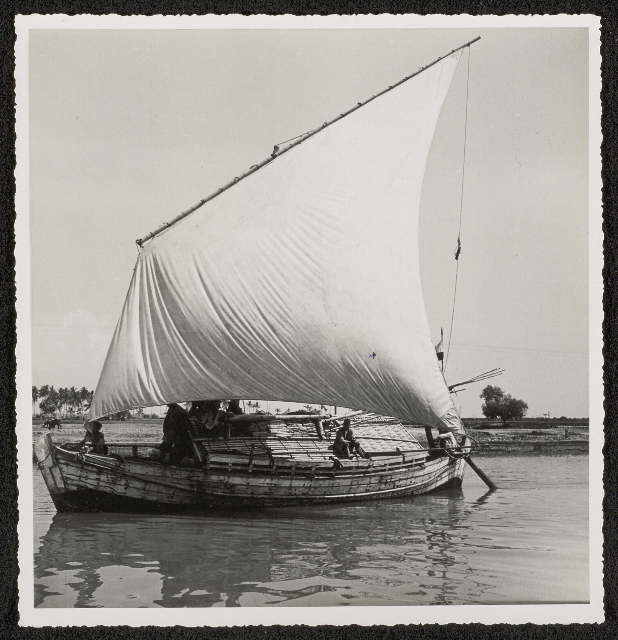 Een prauw met gehesen zeil, Pasar Ikan, Batavia
