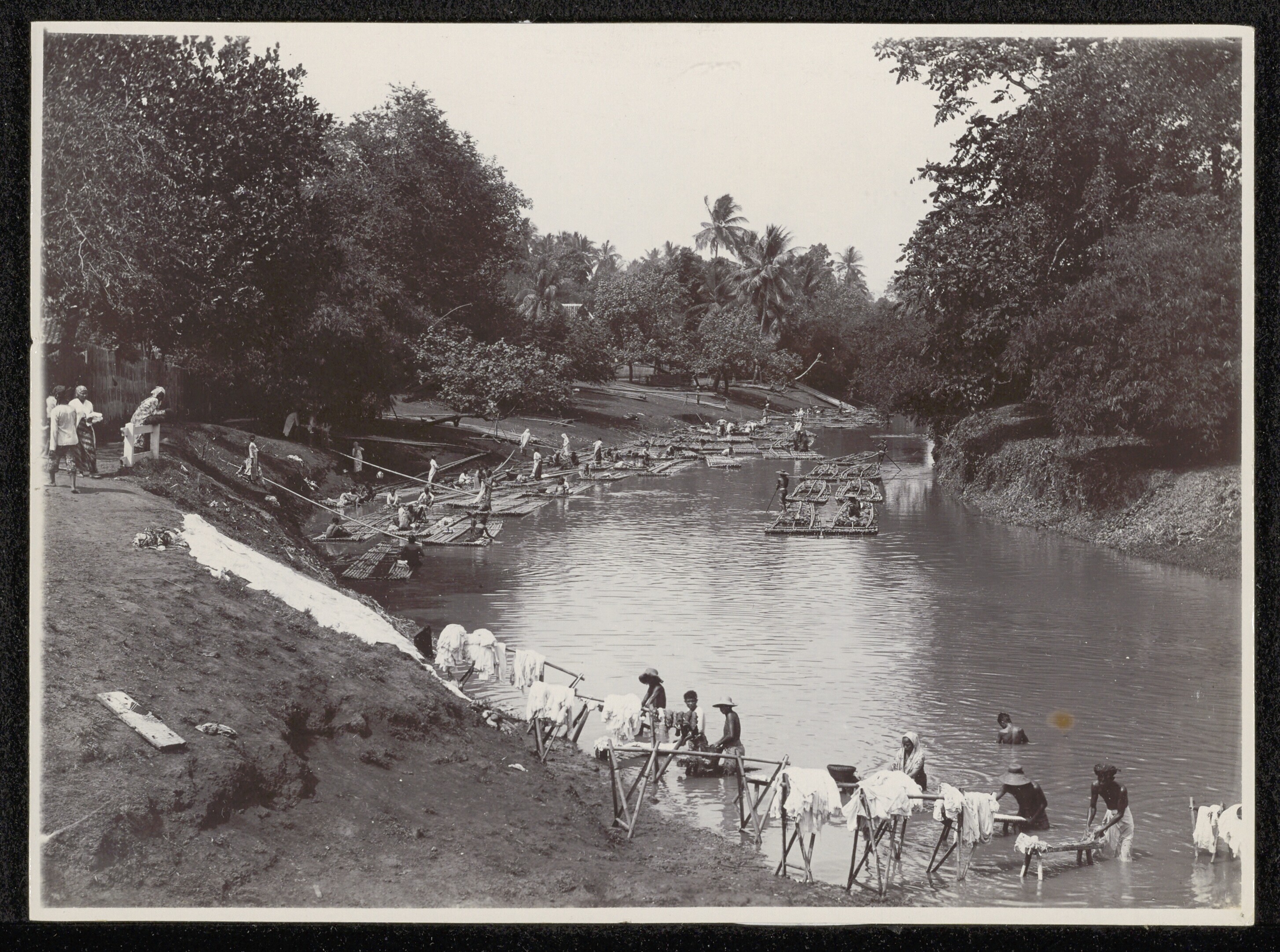 Vrouwen doen de was in de Molenvliet in Batavia