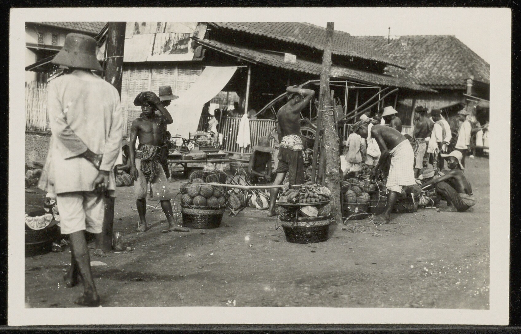 Gezicht op de paviljoens van de Pasar Gambir in Batavia