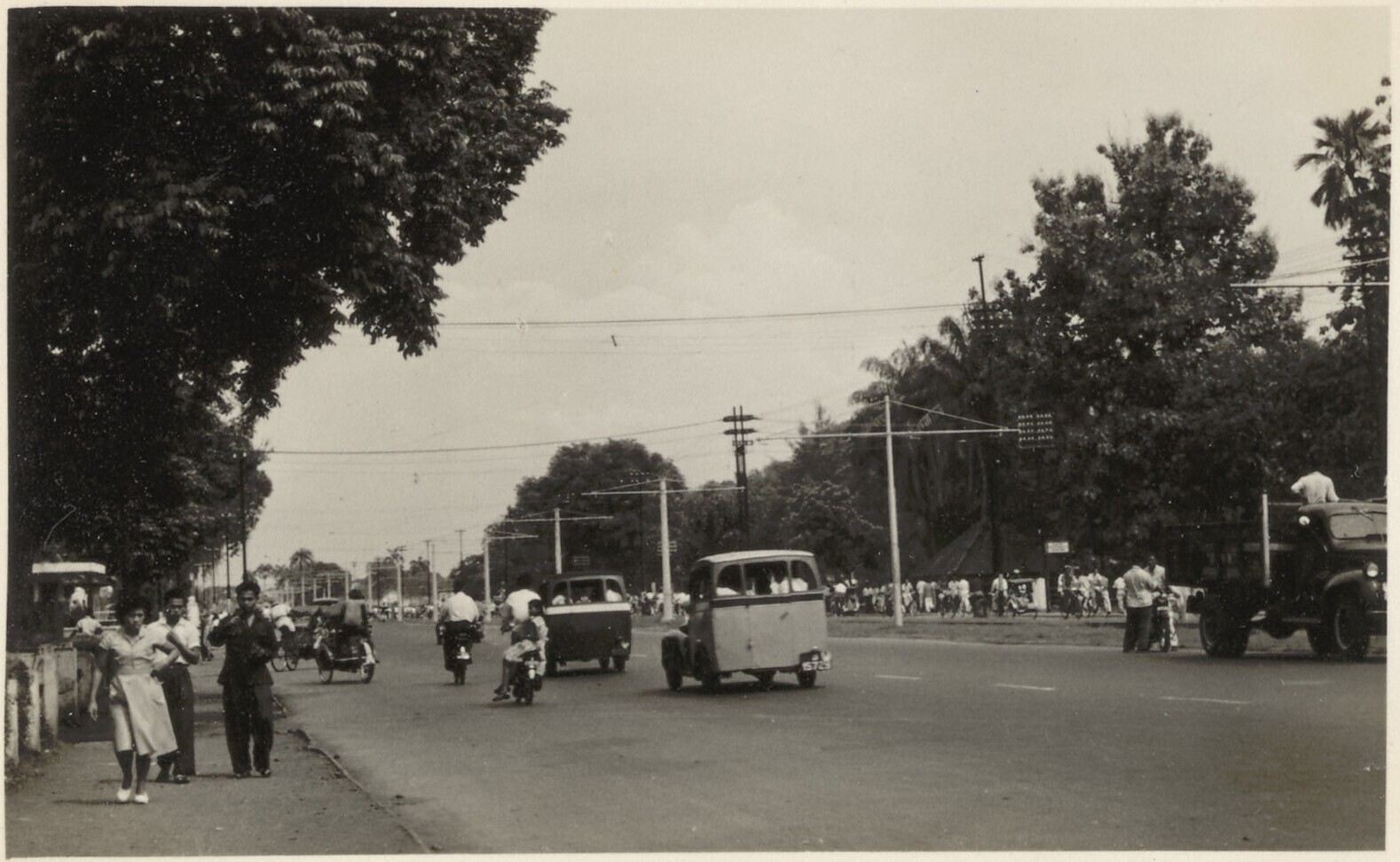 De hoofdverkeersweg van Djakarta naar Djatinegara in...