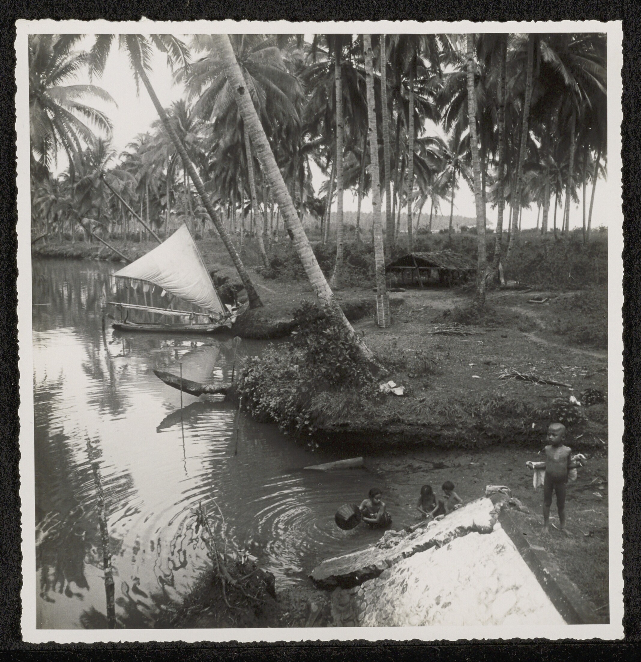 Vrouwen doen de was in de Molenvliet ter hoogte van ...