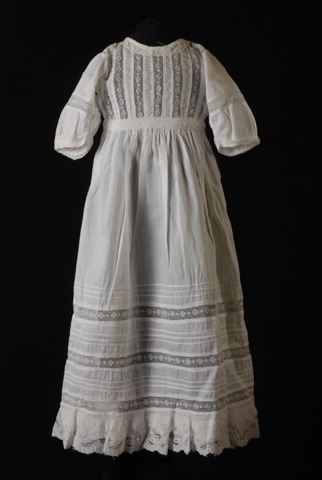 Witte doopjurk met lange mouwen, gerimpelde rok, ent...
