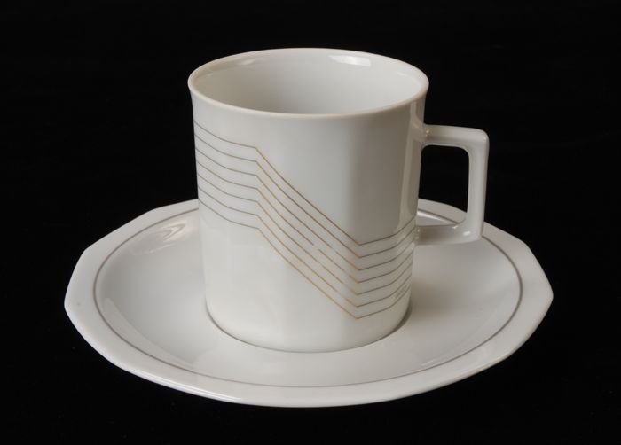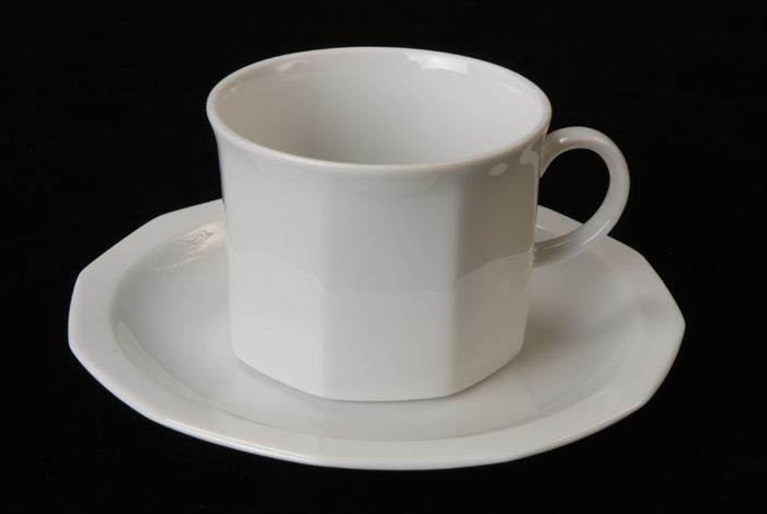Halfhoge kop en schotel van Van Nelle, wit, in hoeki...