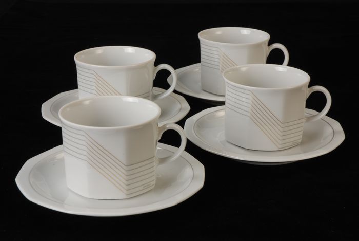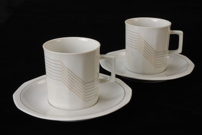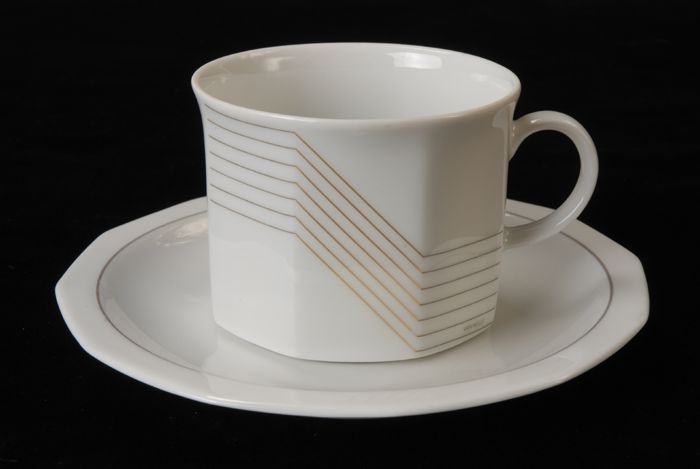 Hoge kop en schotel van Van Nelle met grijs-gouden s...