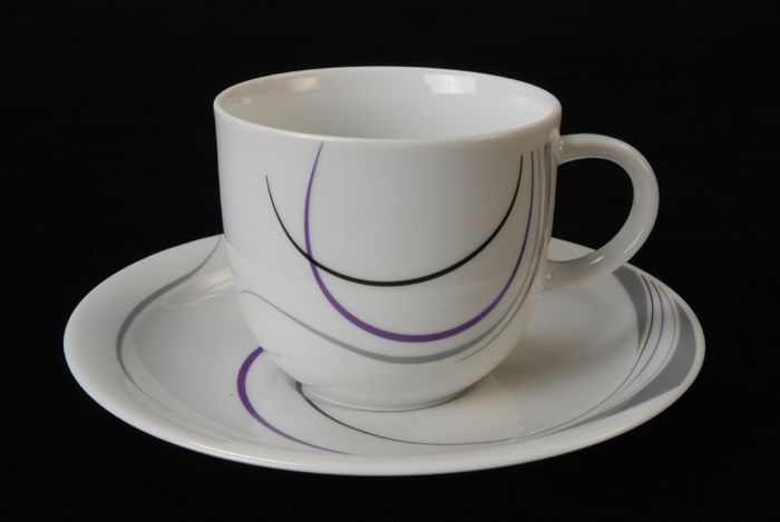 Kop (A) en schotel (B) van Van Nelle met paarse lijn...