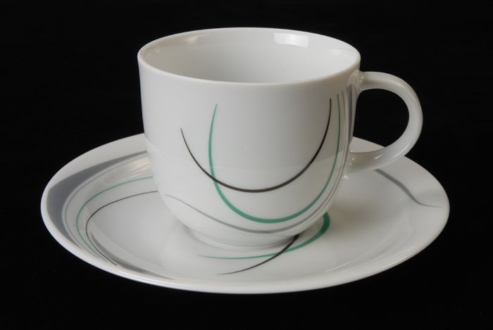 Kop (A) en schotel (B) van Van Nelle met groene lijn...