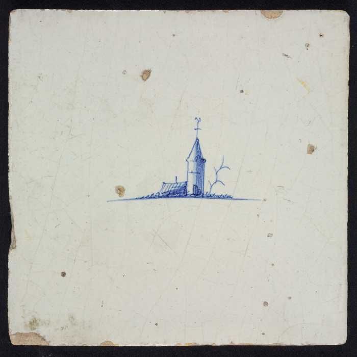 Tafereeltegel, blauw, kerkgebouw, geen hoekmotief