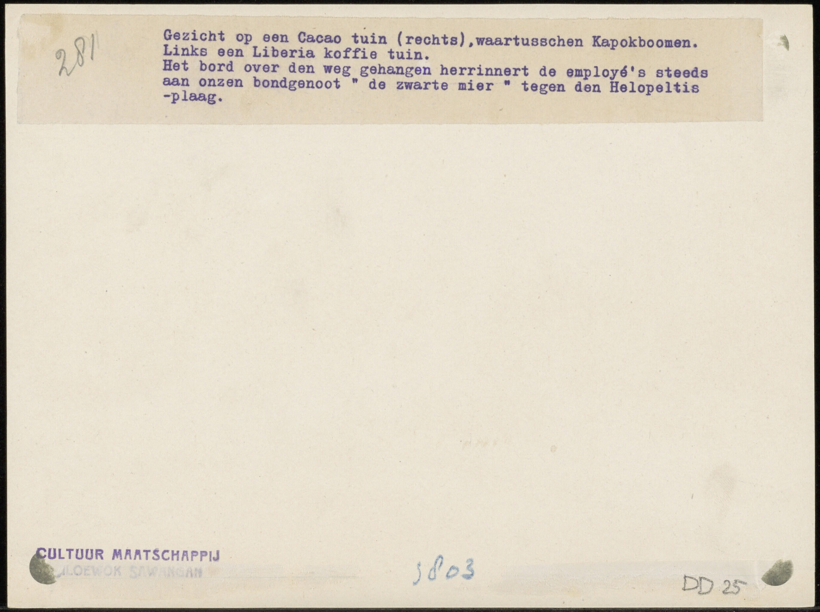 Gezicht op een cacao-tuin aan de rechterzijde, waart...