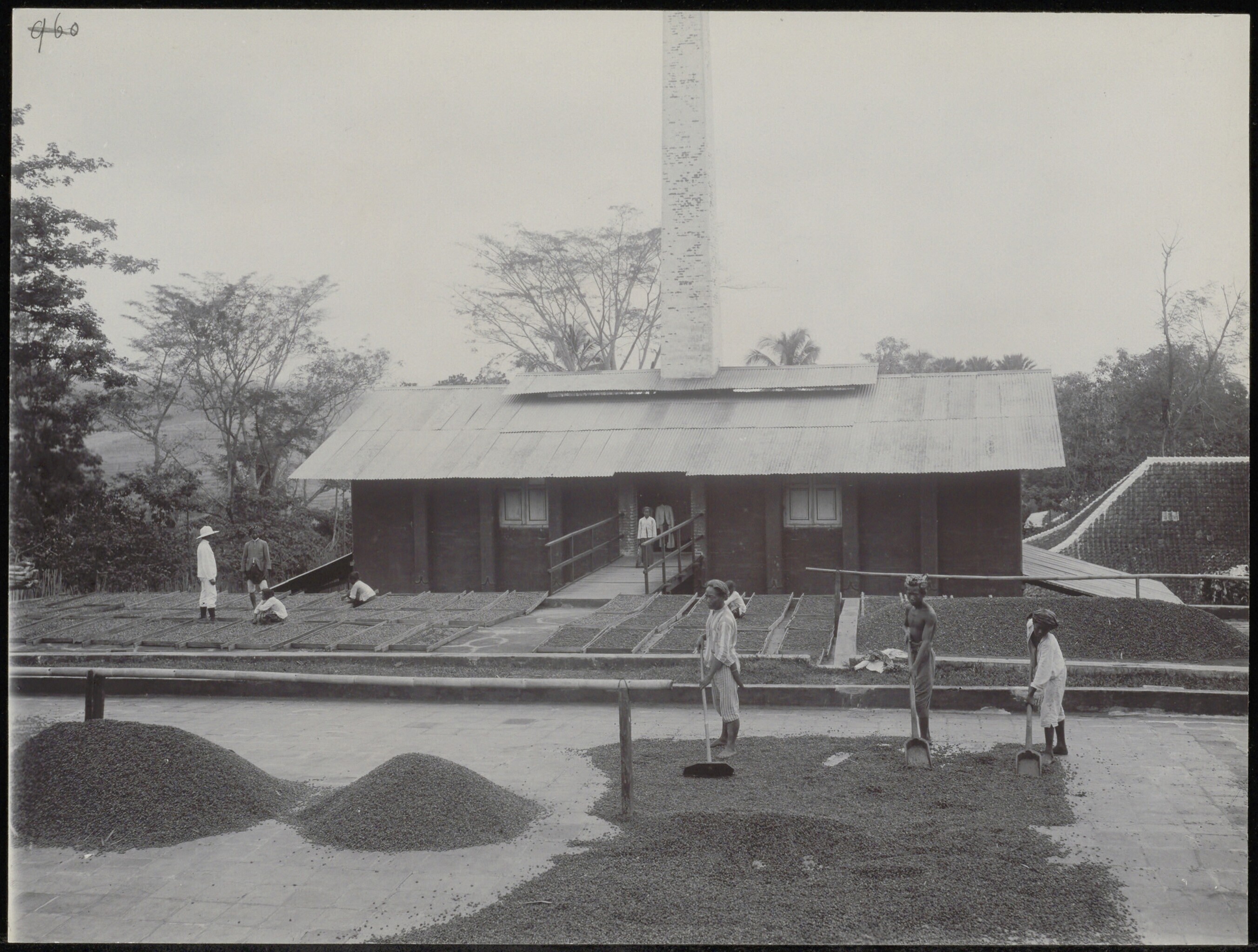 Inheemse arbeiders aan het werk op een stapelplaats ...