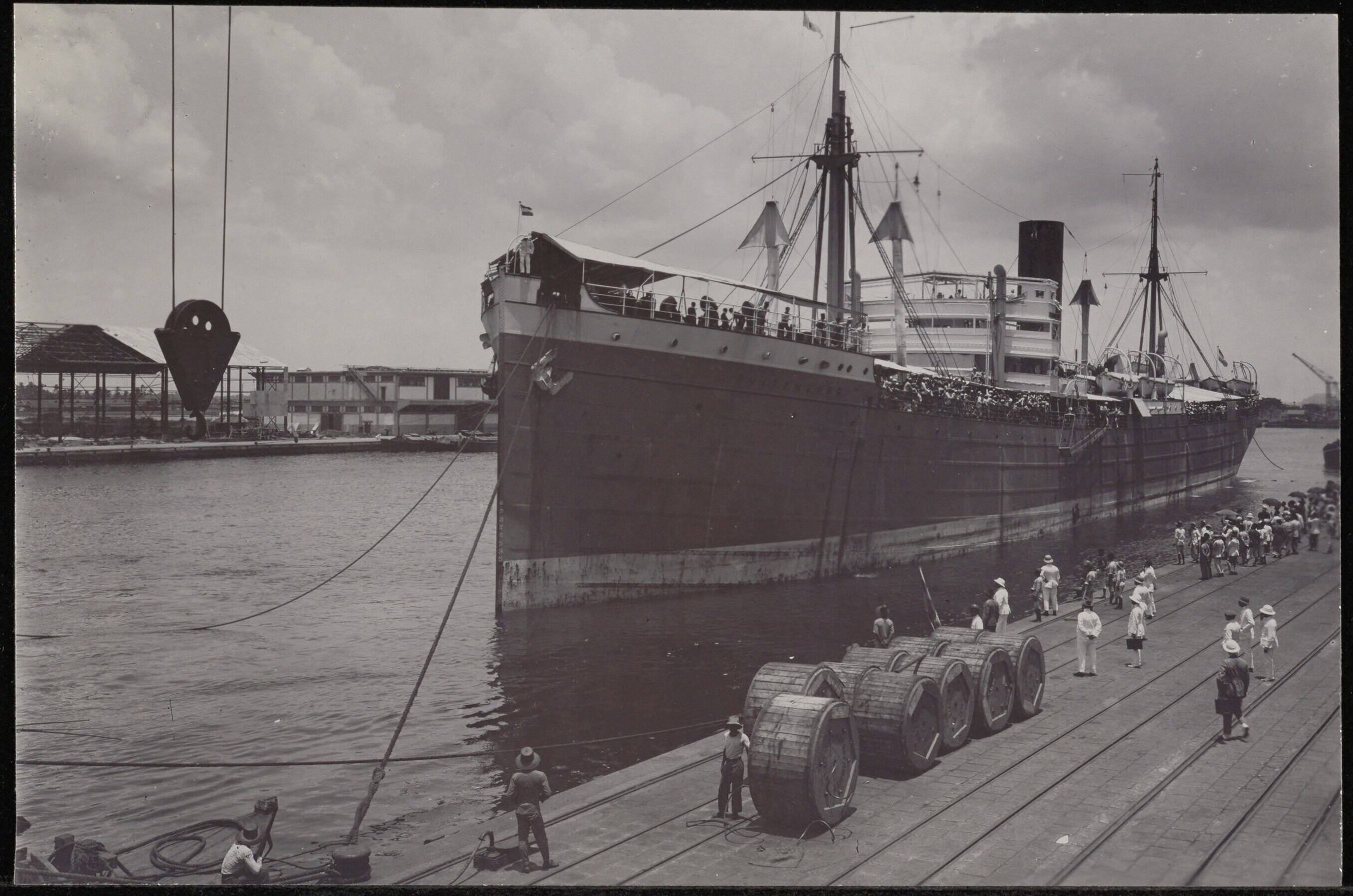 Stoomschip afgemeerd aan een kade van de haven Tandj...