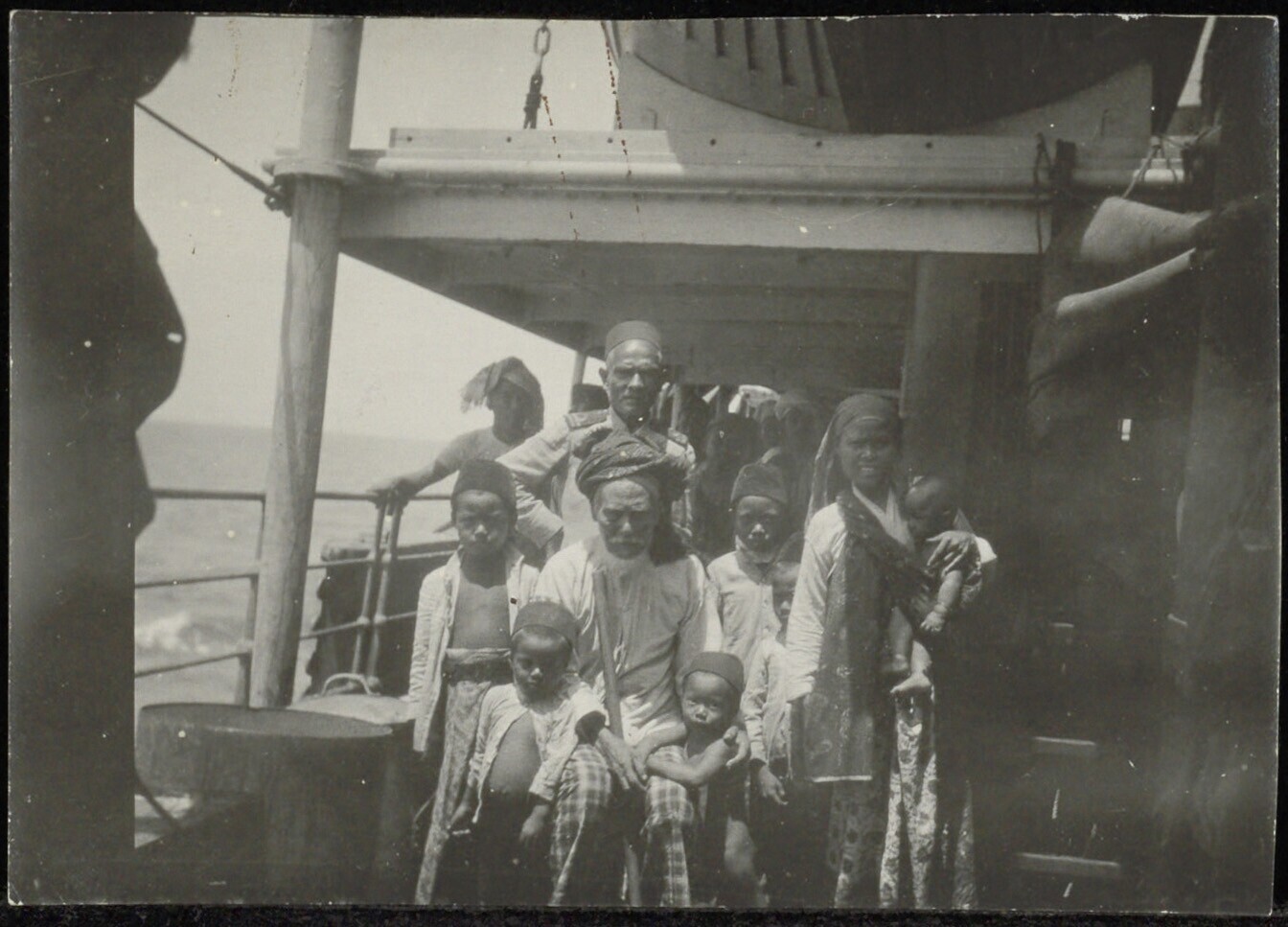Groepsportret van een familie van hadji's aan boord ...