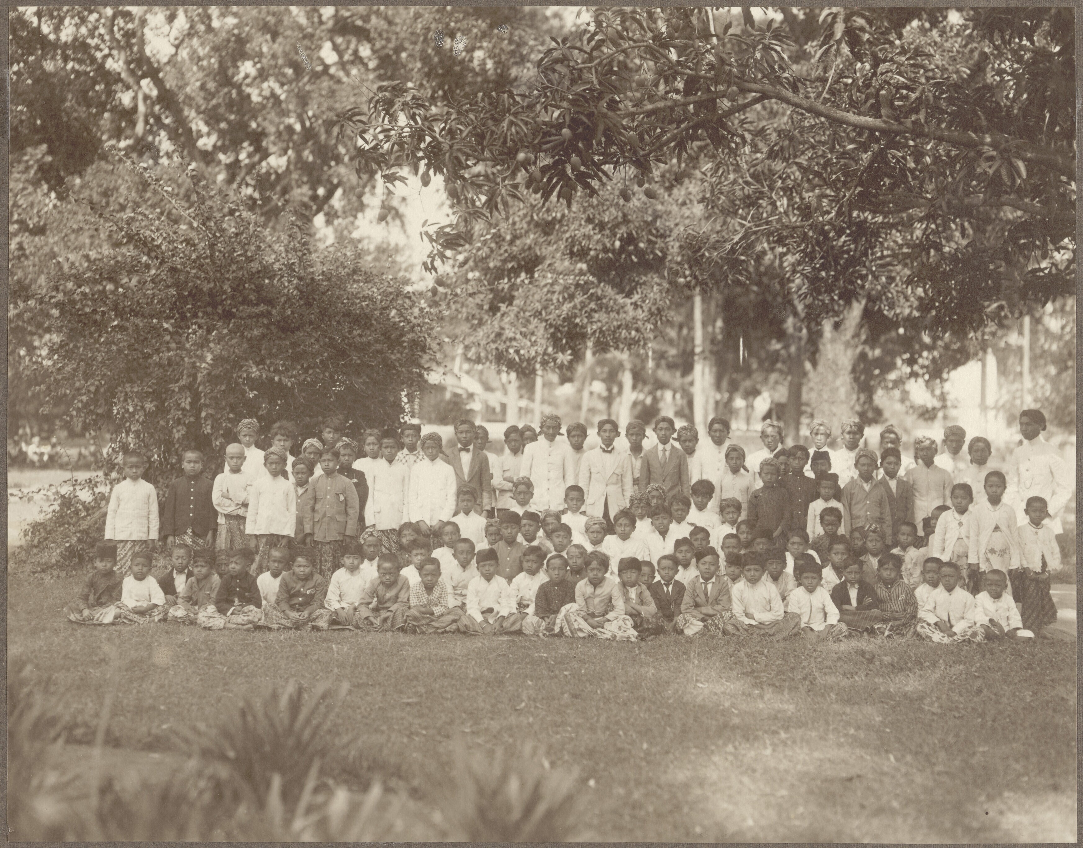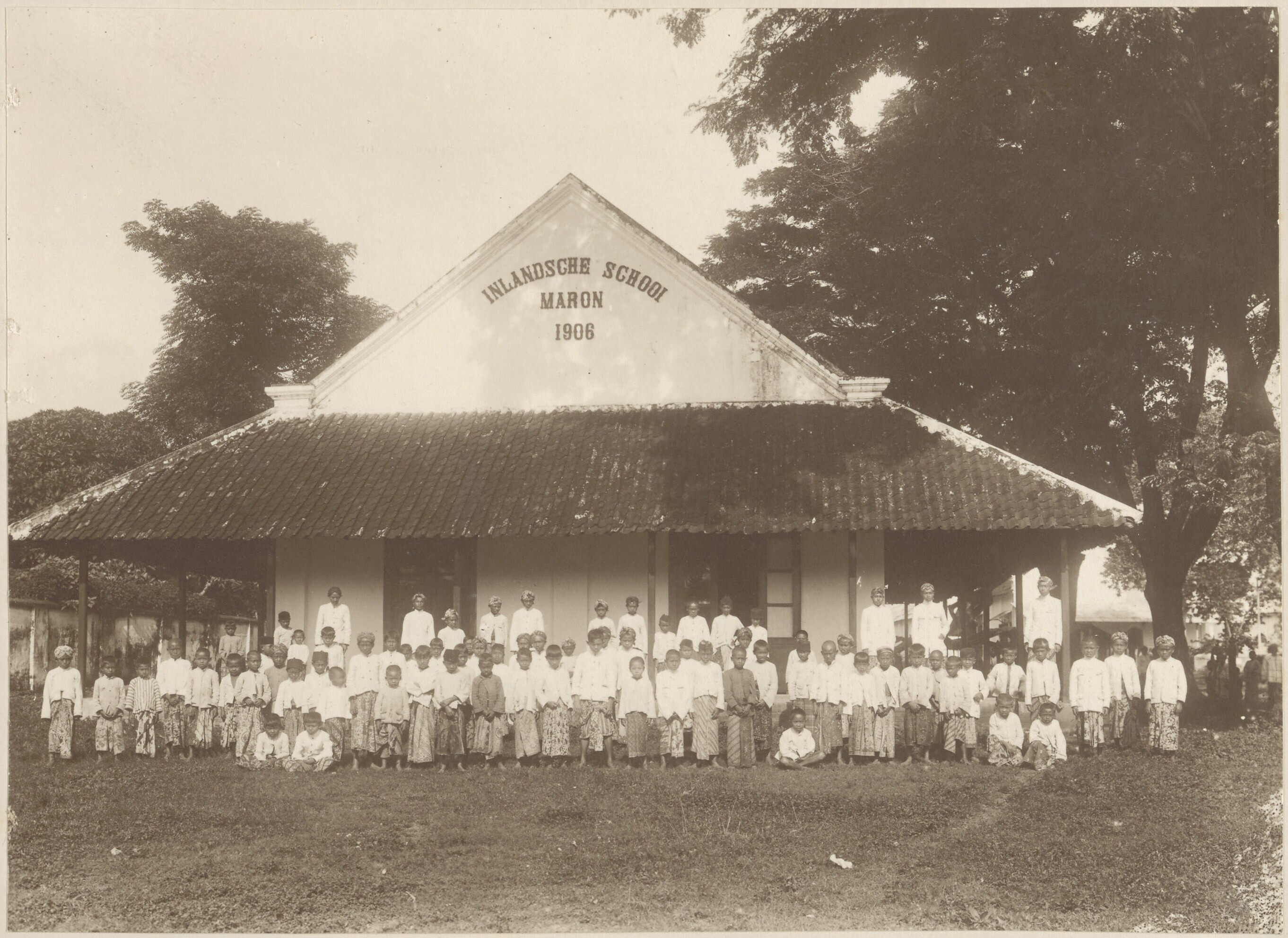 Groepsportret met onderwijzers en leerlingen voor de...