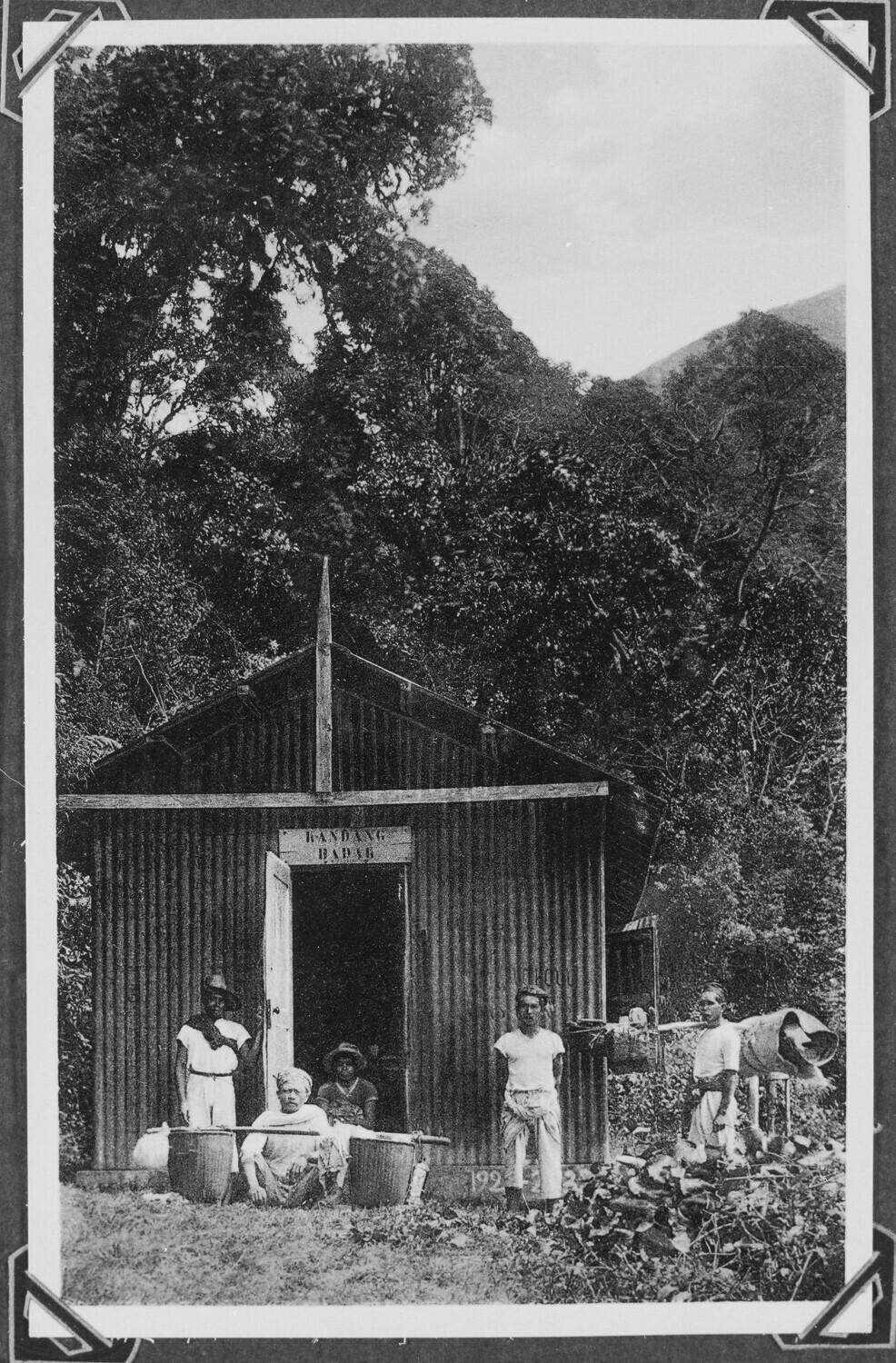 Javaanse verkopers voor de berghut 'Kandang Badak' o...