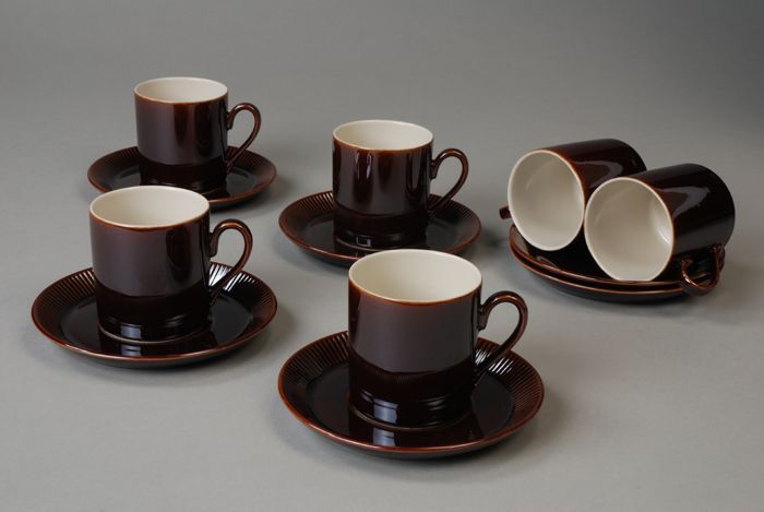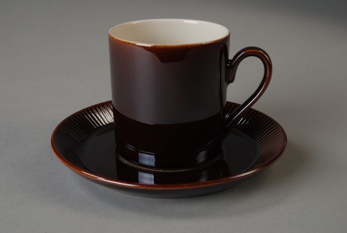 Bruin met witte koffiekop en bruine schotel van Van ...