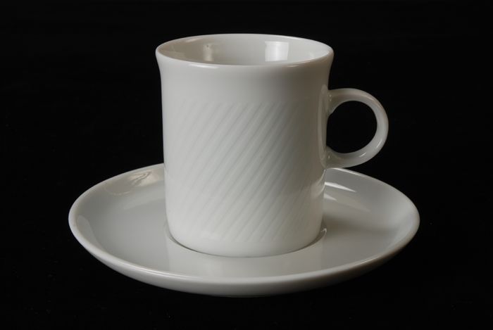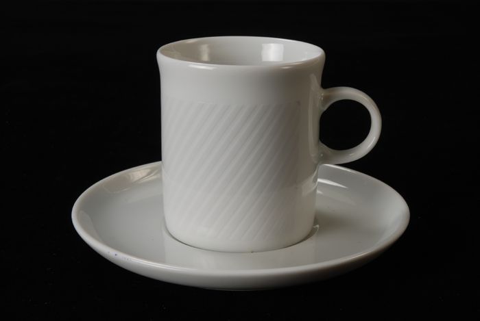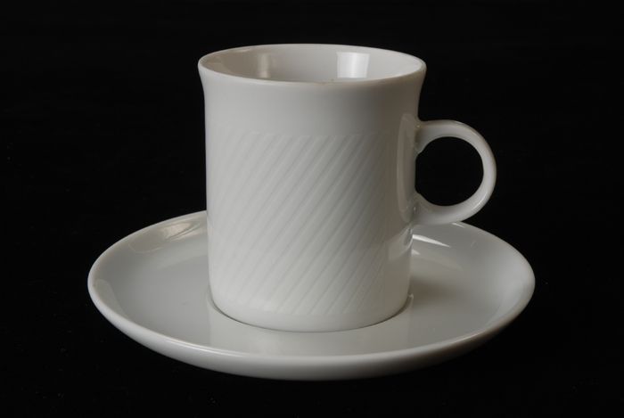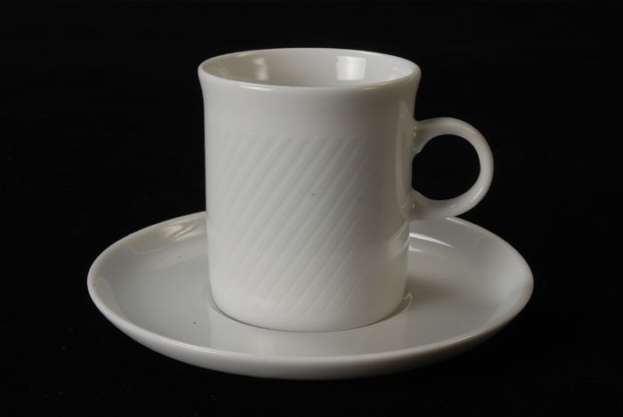 Kop en schotel van Van Nelle, wit met opliggend diag...