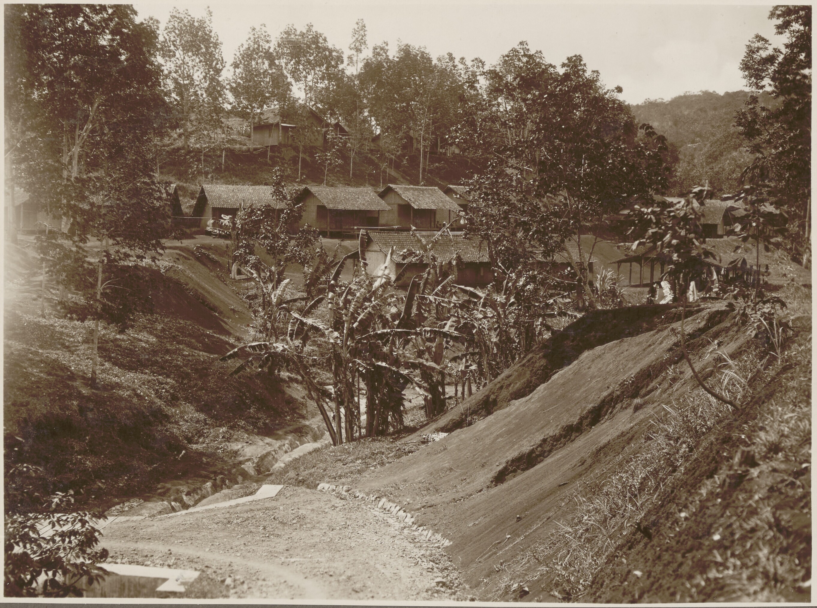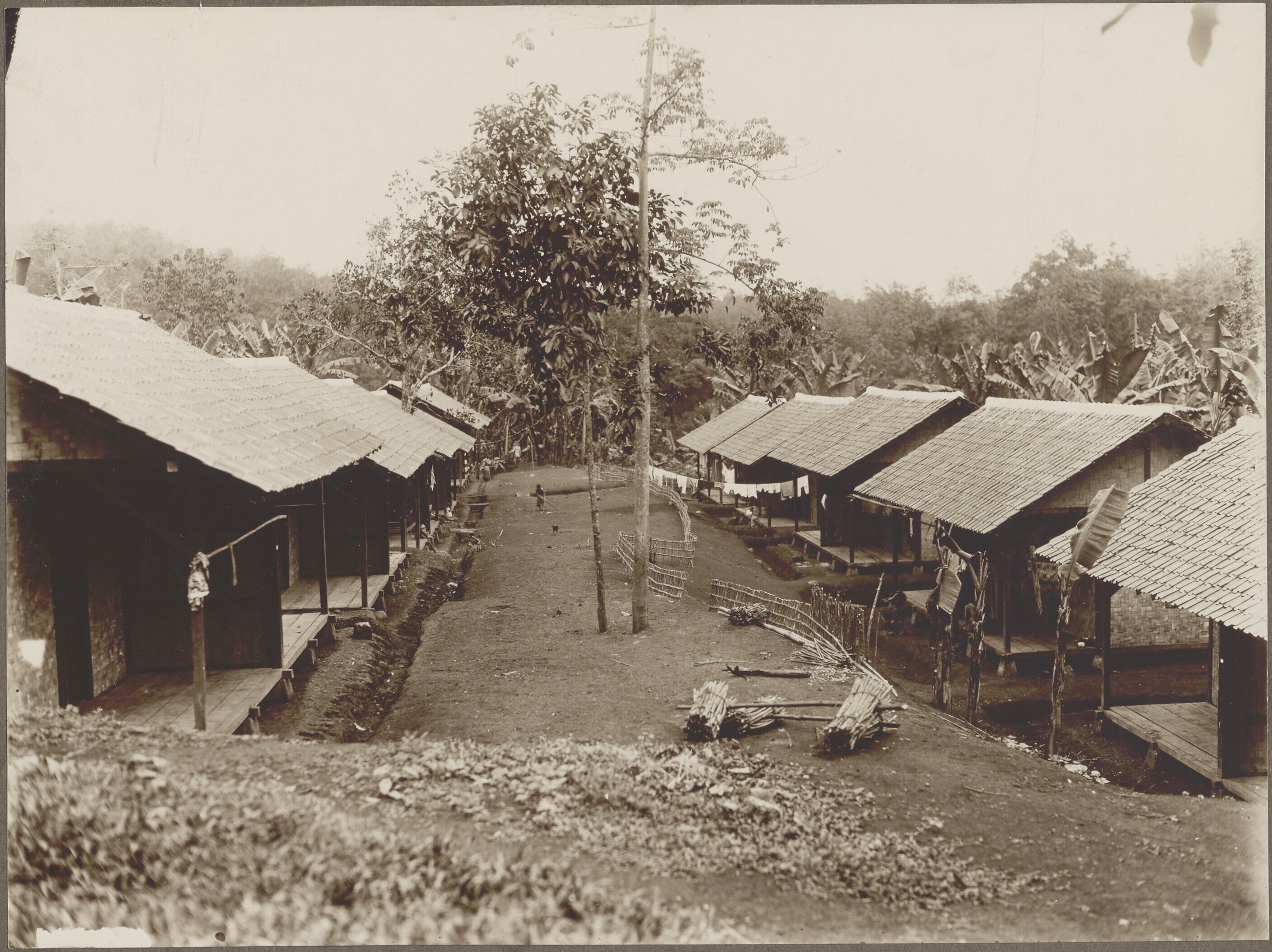 Kampong waarin de arbeiders van de rubberplantage Si...