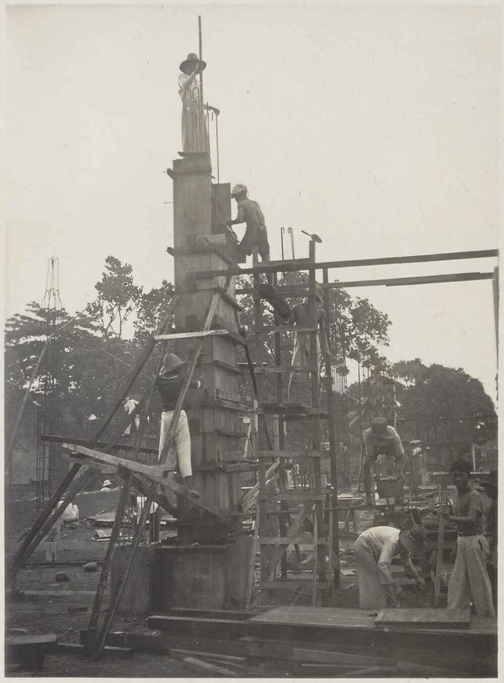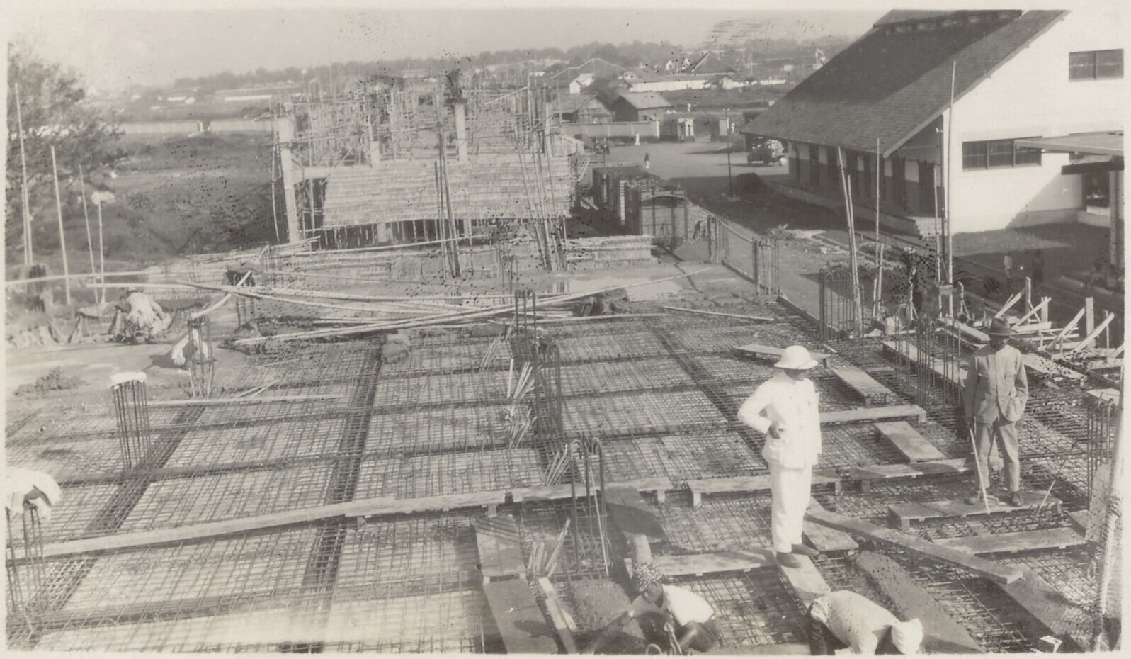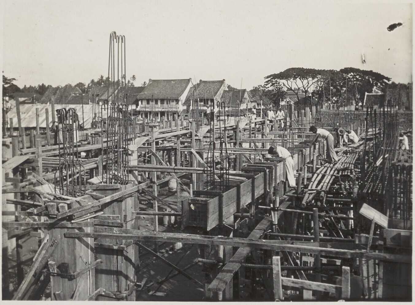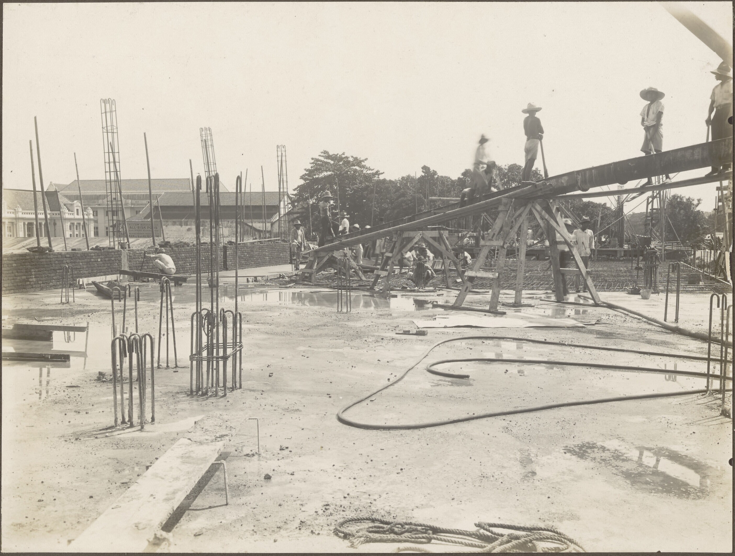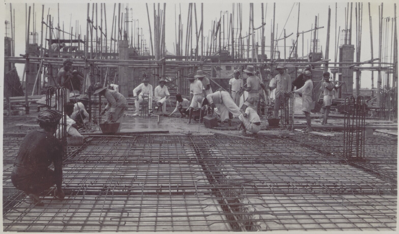 Betonloods C in aanbouw tijdens de aanleg van het ma...