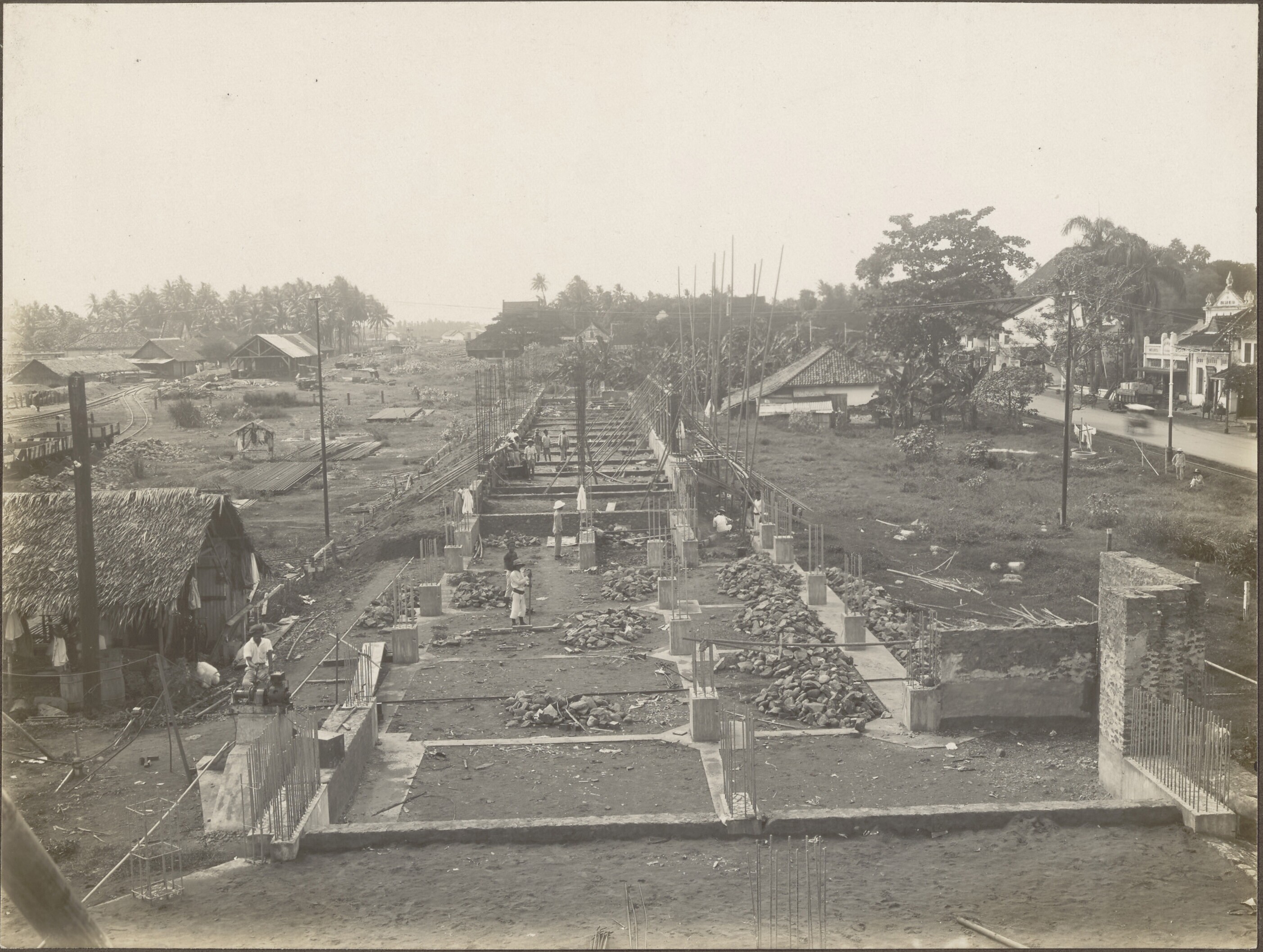 Duiker en brug in aanbouw bij het spoorwegemplacemen...