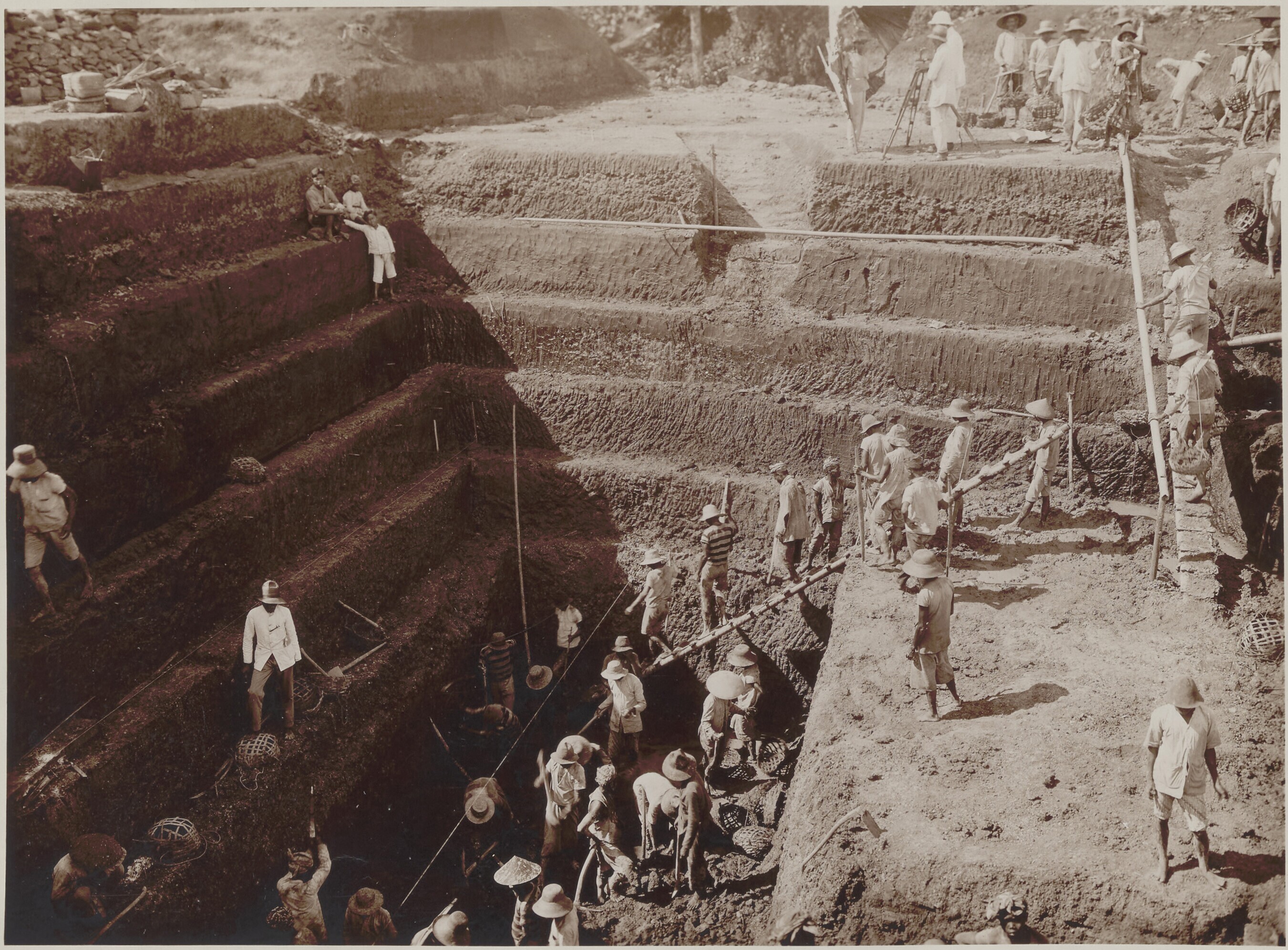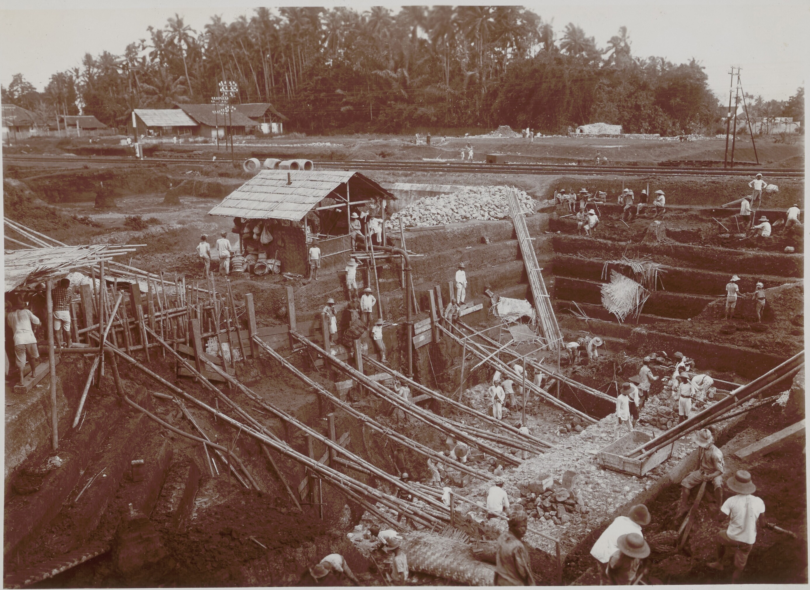 Funderingswerkzaamheden voor betonloods D tijdens de...