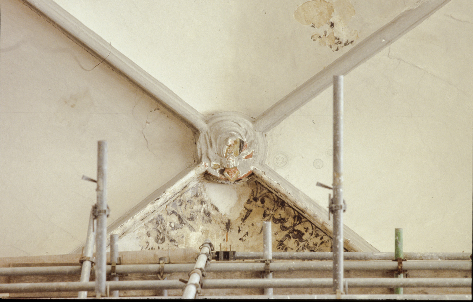 Interieur, detail restant gewelfschildering - gewelf...
