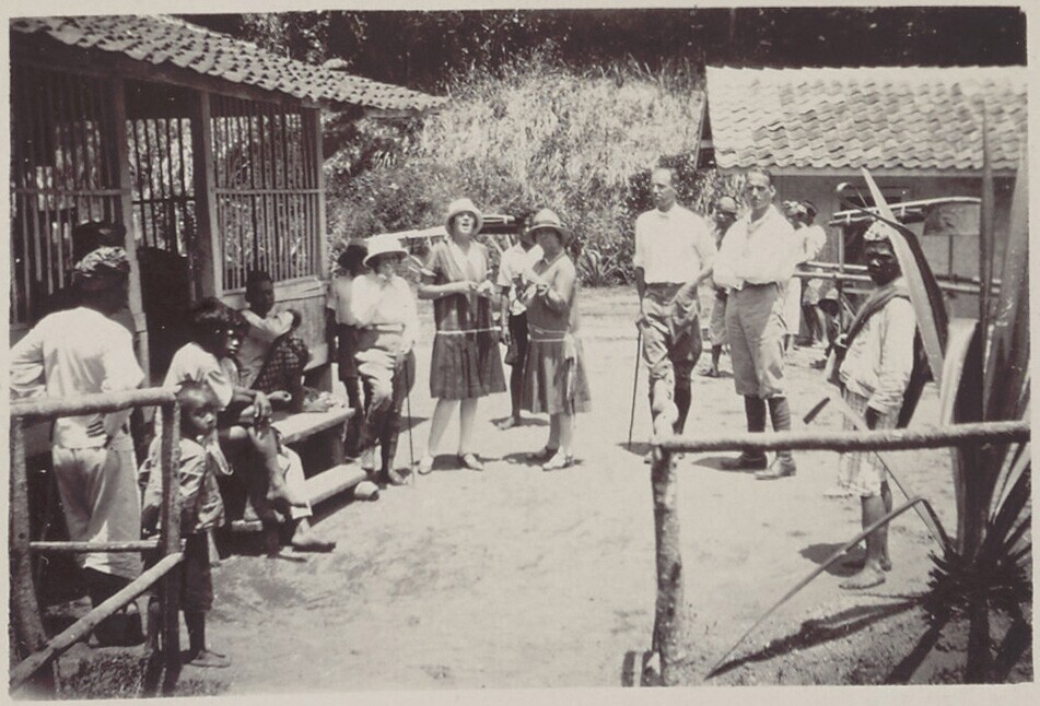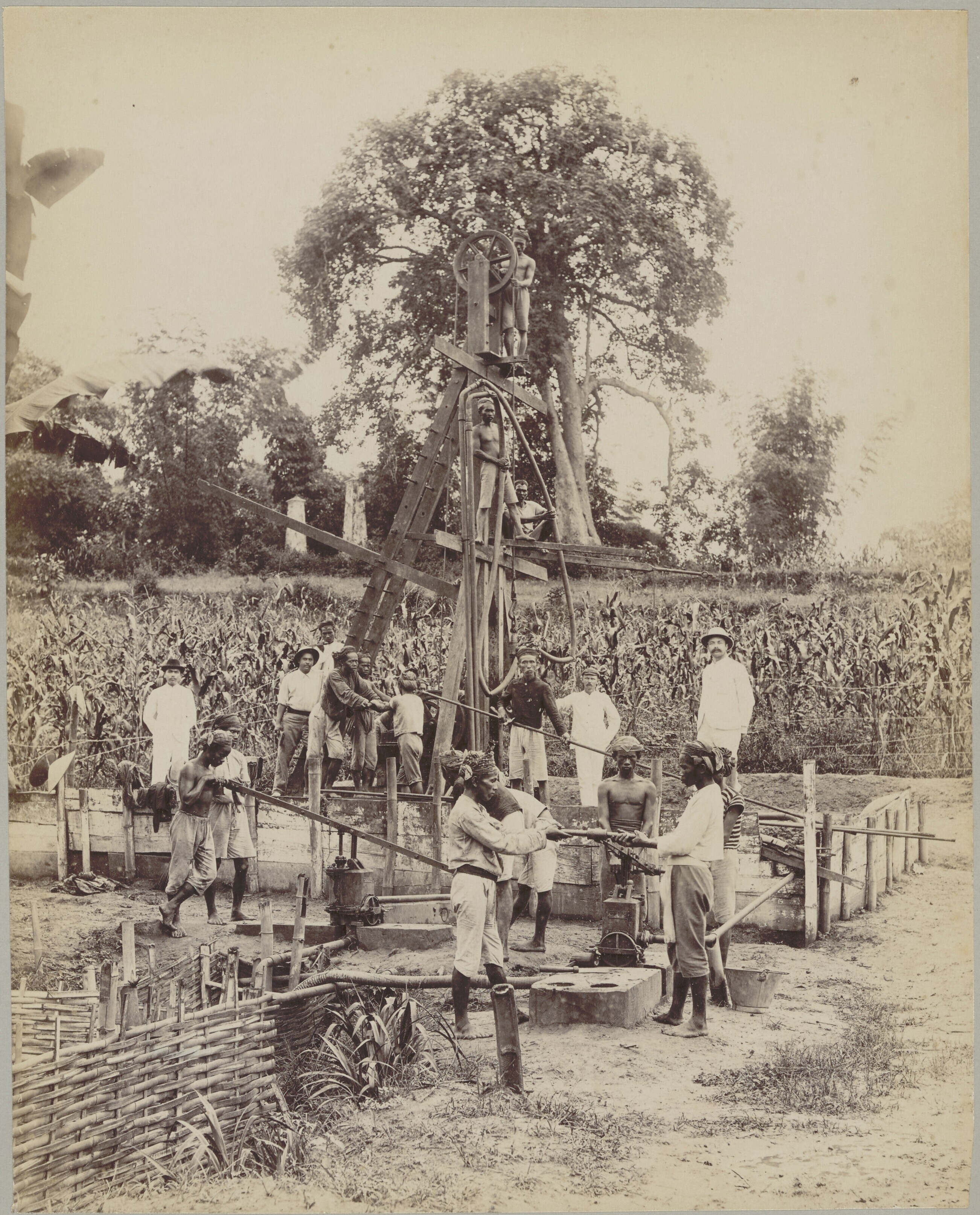 Bedrijvigheid rond een waterput bij een woonhuis in ...