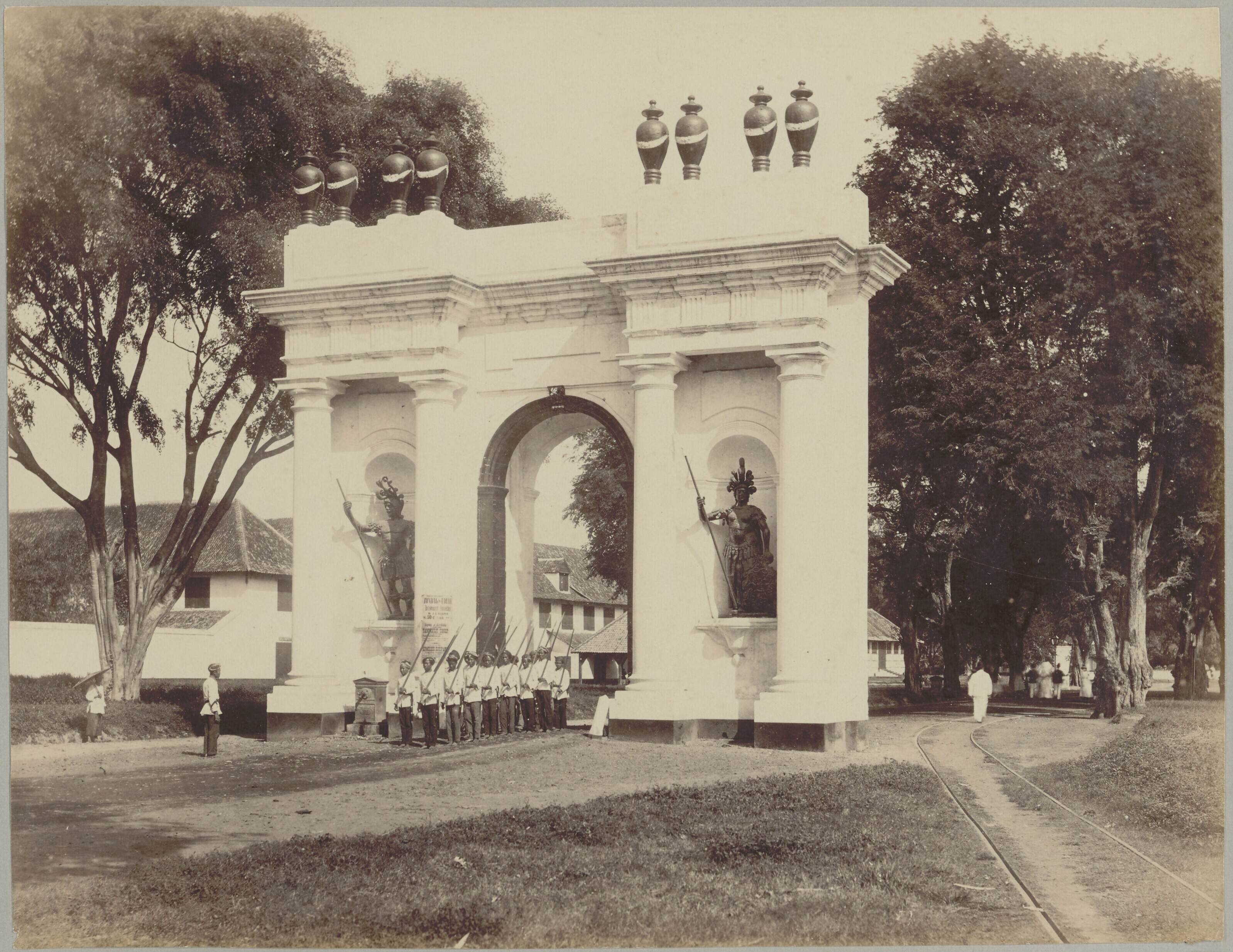 Lansdragers onder de Amsterdamse Poort in Batavia