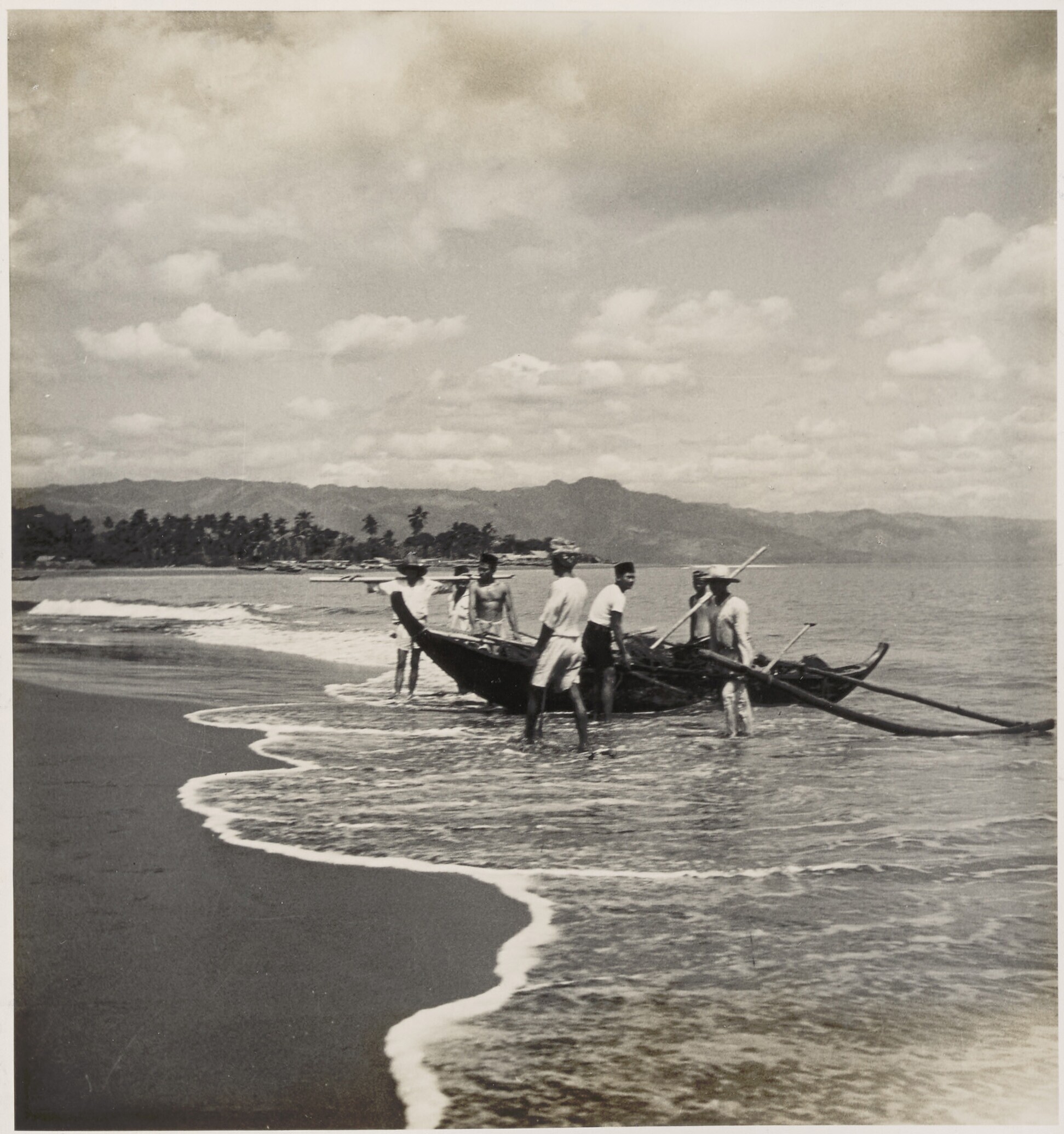 Mannen met een prauw in de branding, Wijnkoops-baai