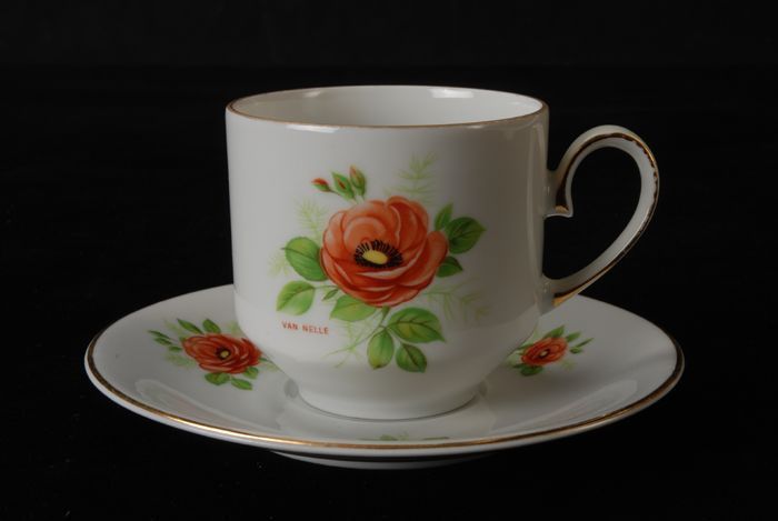 Oranjerode kop en schotel van Van Nelle, Bolta campi...