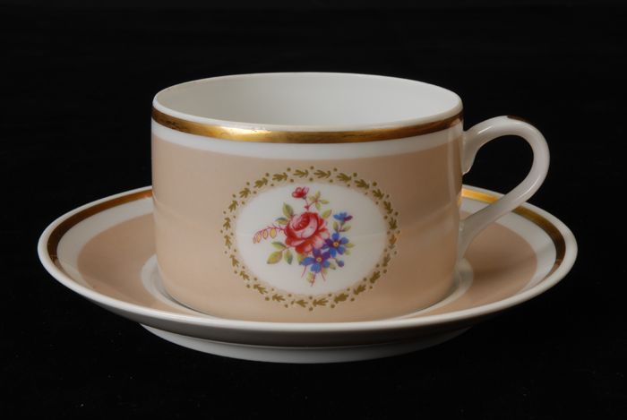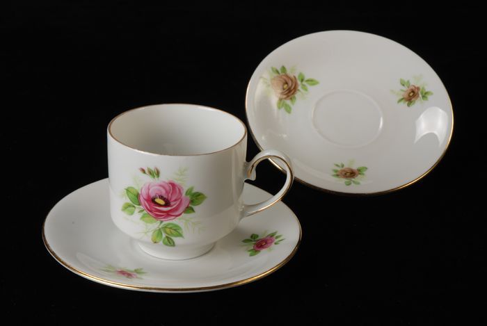 Kop (A) en schotel (B) met roos in medaillon van Van...