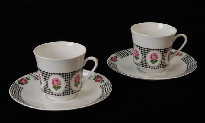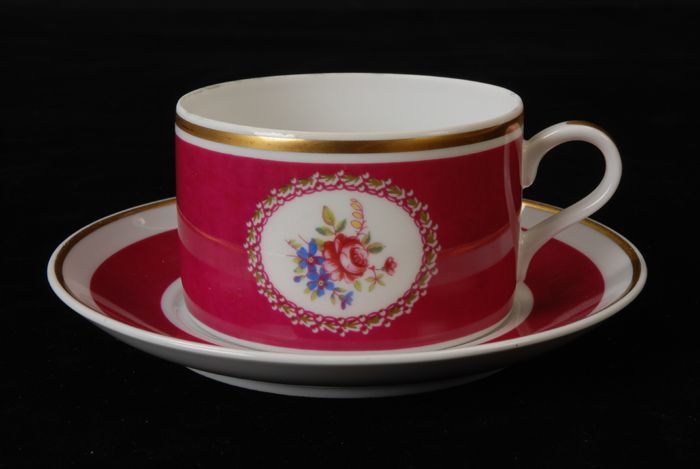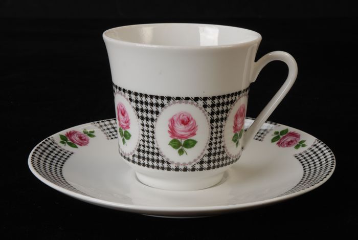 Theekop en schotel met rood theeroosmotief en rode l...