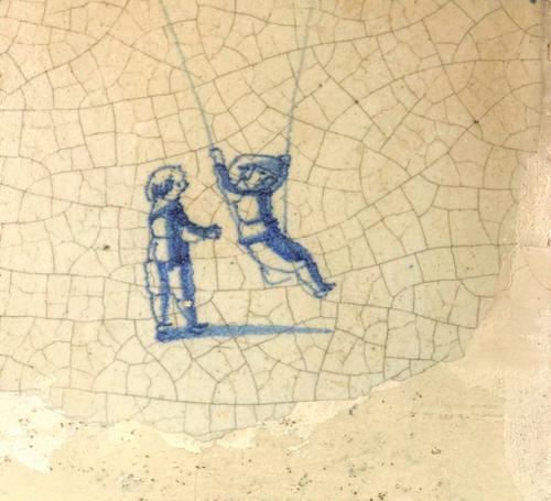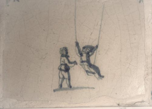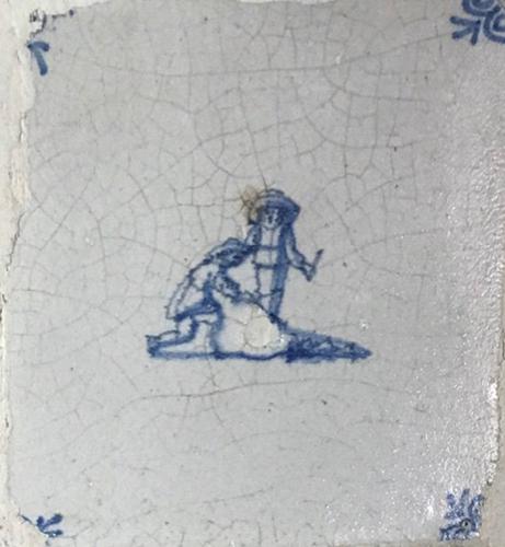 Tegel van aardewerk met tinglazuur voorstellende zui...