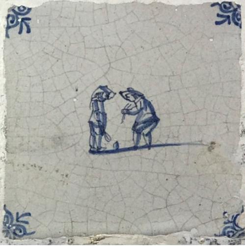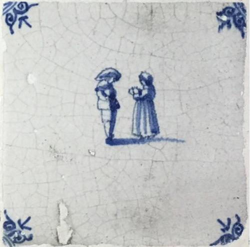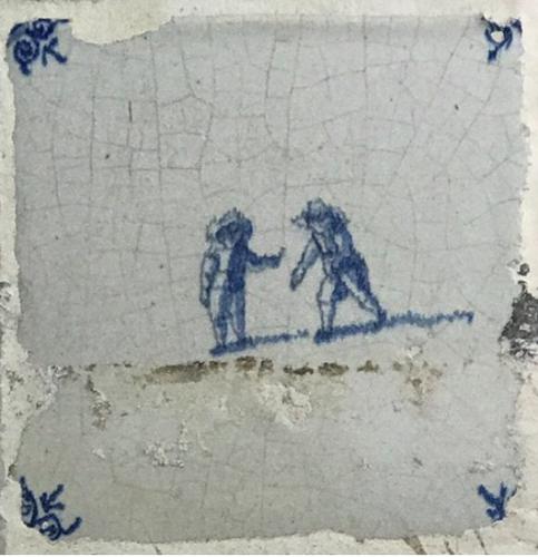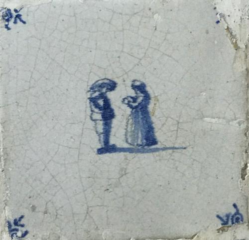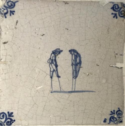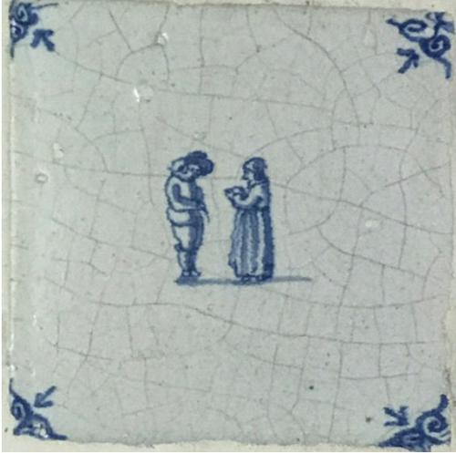Tegel van aardewerk met tinglazuur voorstellende ste...