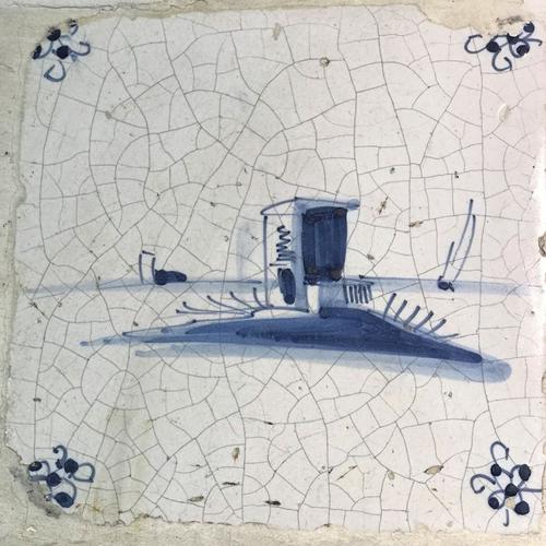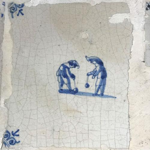 Tegel van aardewerk met tinglazuur voorstellende ? -...