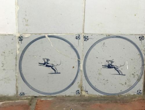 Tegels van aardewerk met tinglazuur voorstellende ho...
