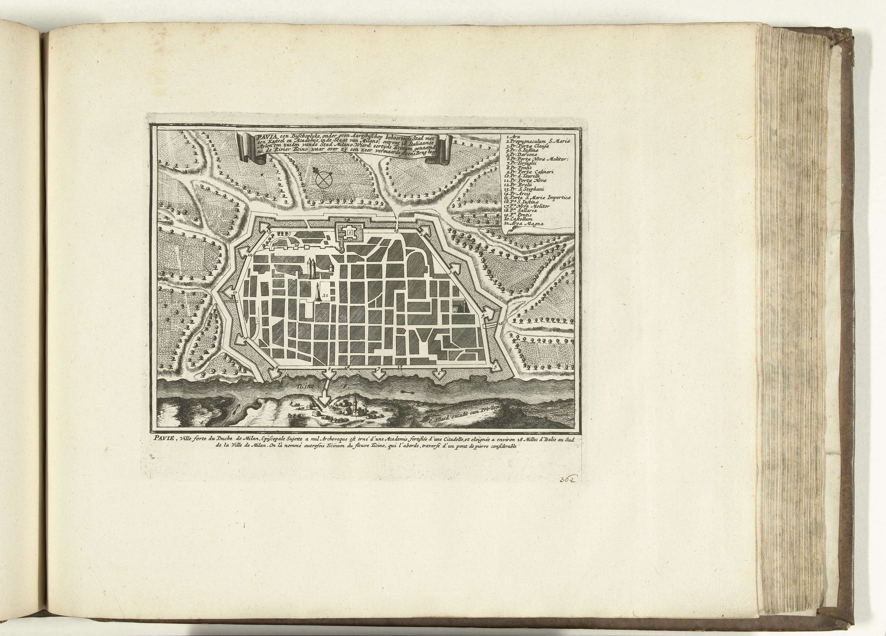 Plattegrond van Pavia, 1726