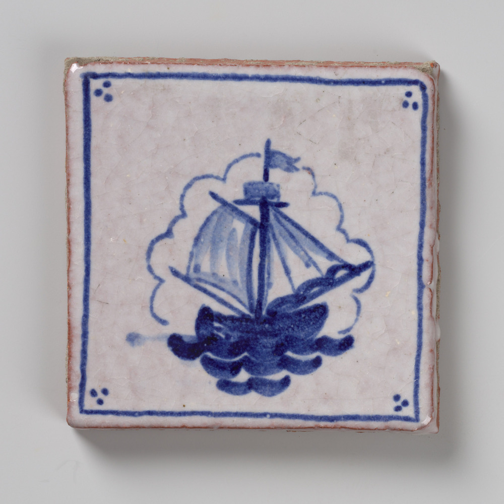 tegel van aardewerk met tinglazuur, voorstellende: z...