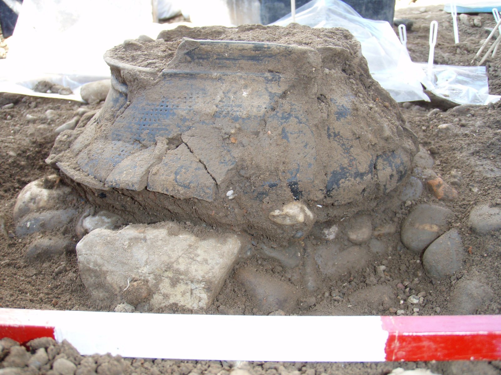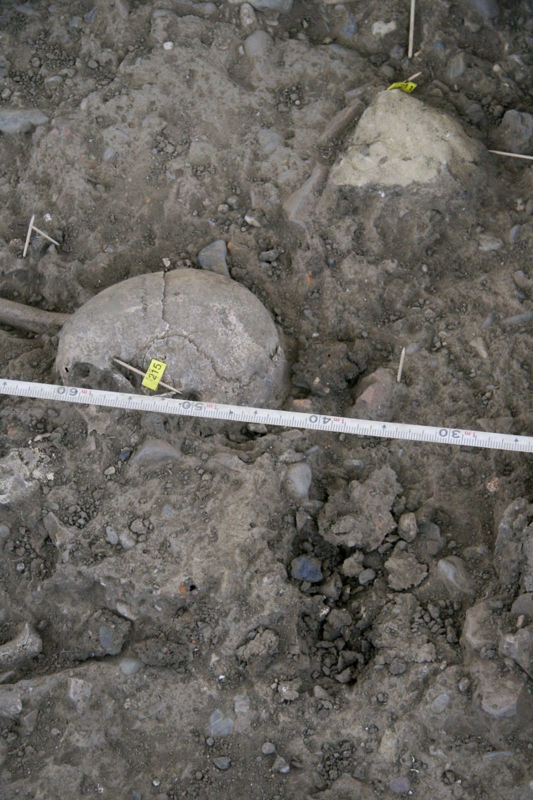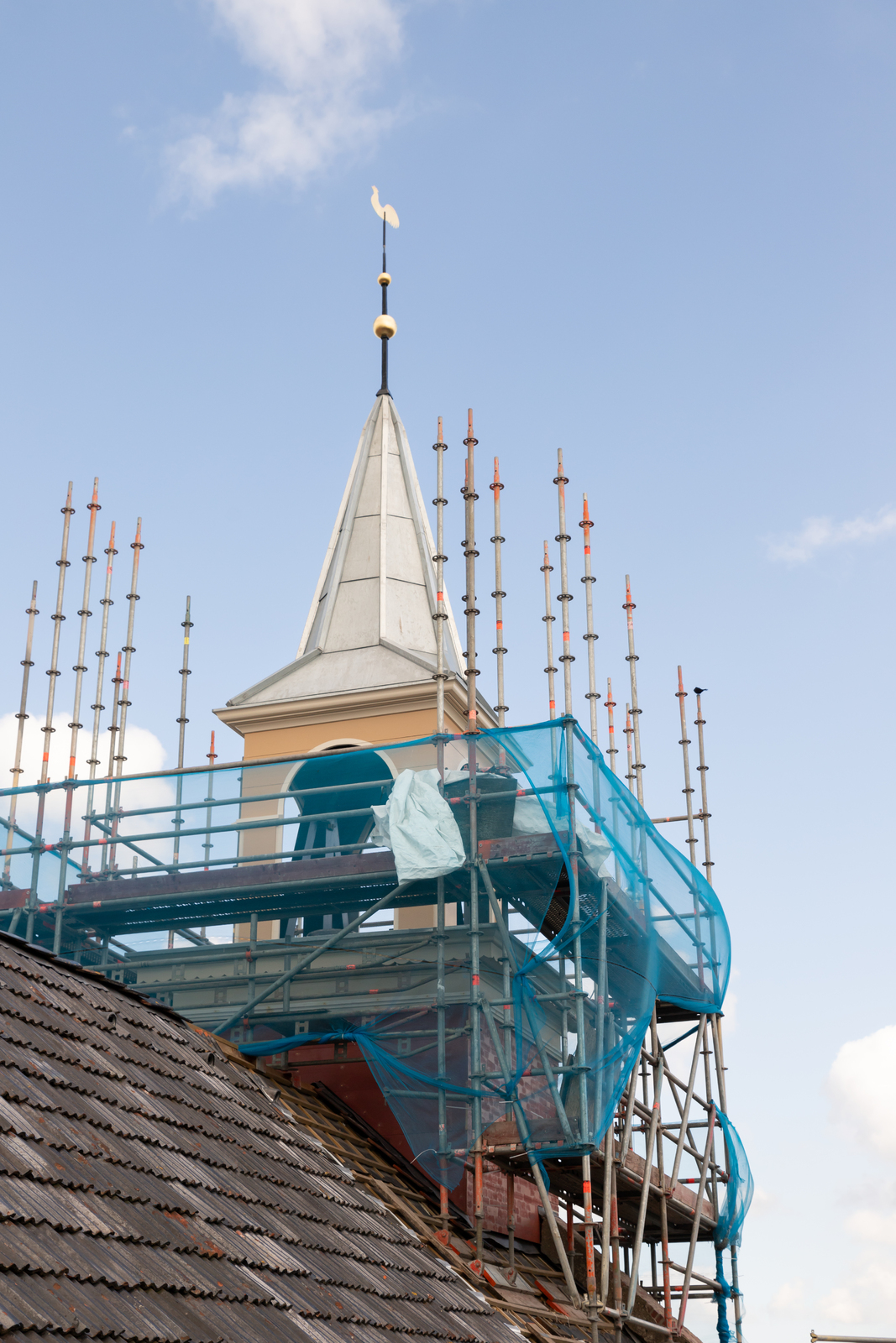 Funderingswerkzaamheden, met omhoog gevijzelde kerk
