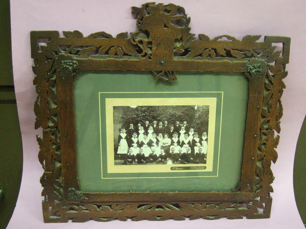 Foto van weeskinderen in gefiguurzaagde lijst.