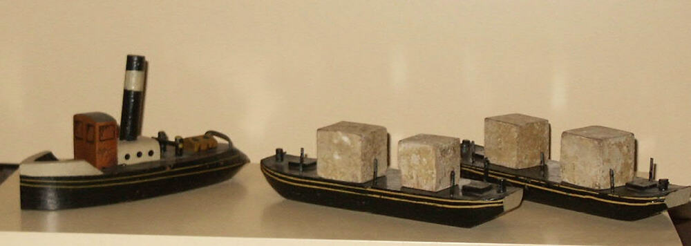stoomsleepboot met dekschuiten van hout, 1930-1950