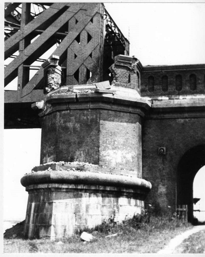 Foto, voorstellende de spoorbrug te Culemborg met bo...