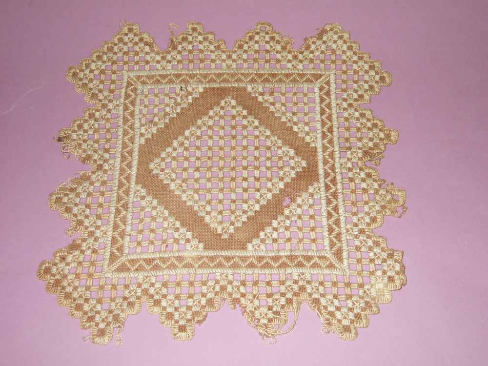 Kleedje van katoen, geborduurd door een huisvrouw; a...