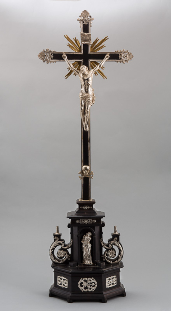Kruis met corpus, van ebbenhout en plaatzilver, anon...