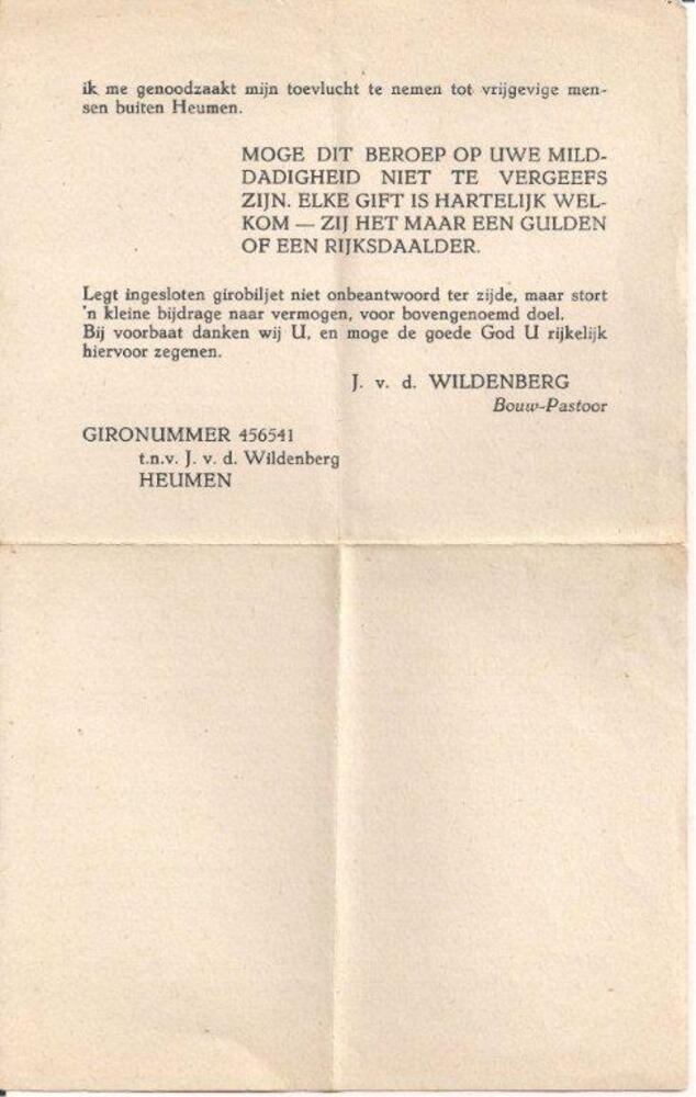 Brief bouwpastoor J.A. van den Wildenberg