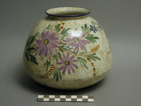 Vaas, model F130, grijsblauw met schildering met blo...
