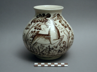 Vaas, model 830, beige met decor hert
