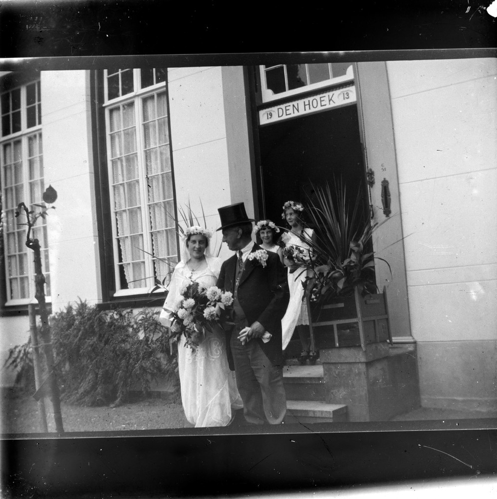 Bruidspaar op de stoep van Huize 'Den Hoek' in Nijkerk