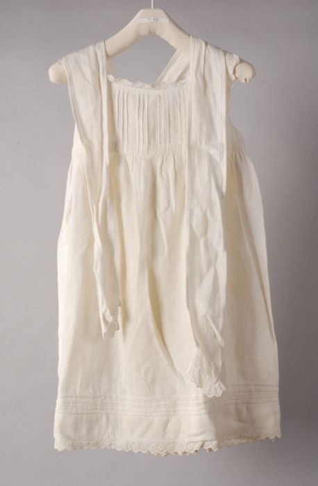 Gerende onderjurk van crèmekleurig katoen, bovenrand...