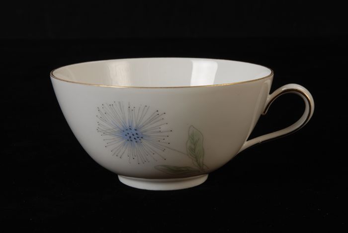 Theekop voor Van Nelle met twee blauwe bloemen, deel...